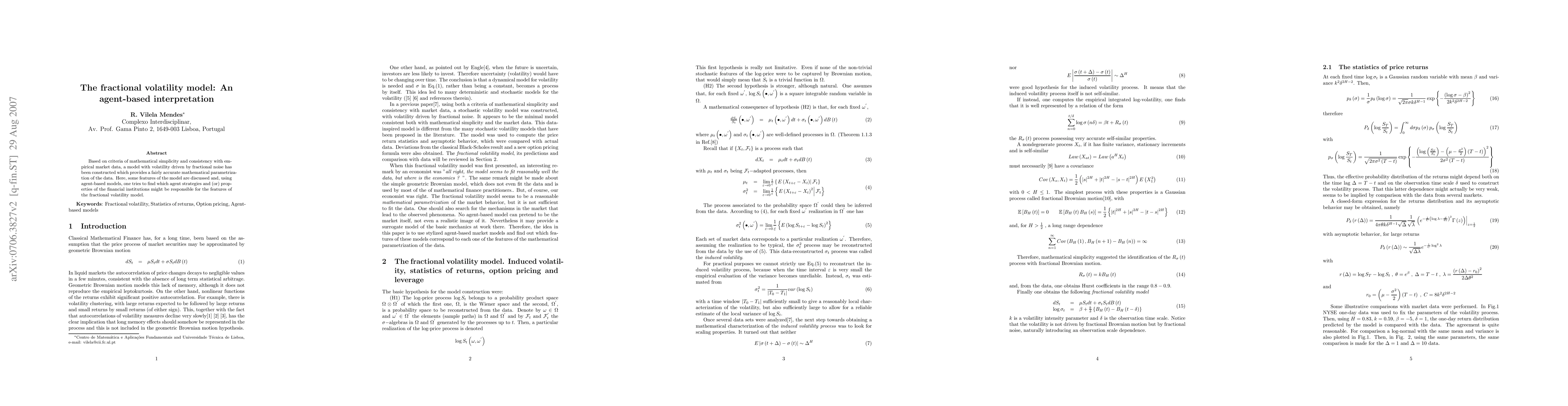 Based on criteria of mathematical simplicity and consistency with empirical market data, a model with volatility driven by fractional noise has been constructed which provides a fairly accurate mathematical parametrization of the data. Here, some features of the model are discussed and, using agent-based models, one tries to find which agent strategies and (or) properties of the financial institutions might be responsible for the features of the fractional volatility model.