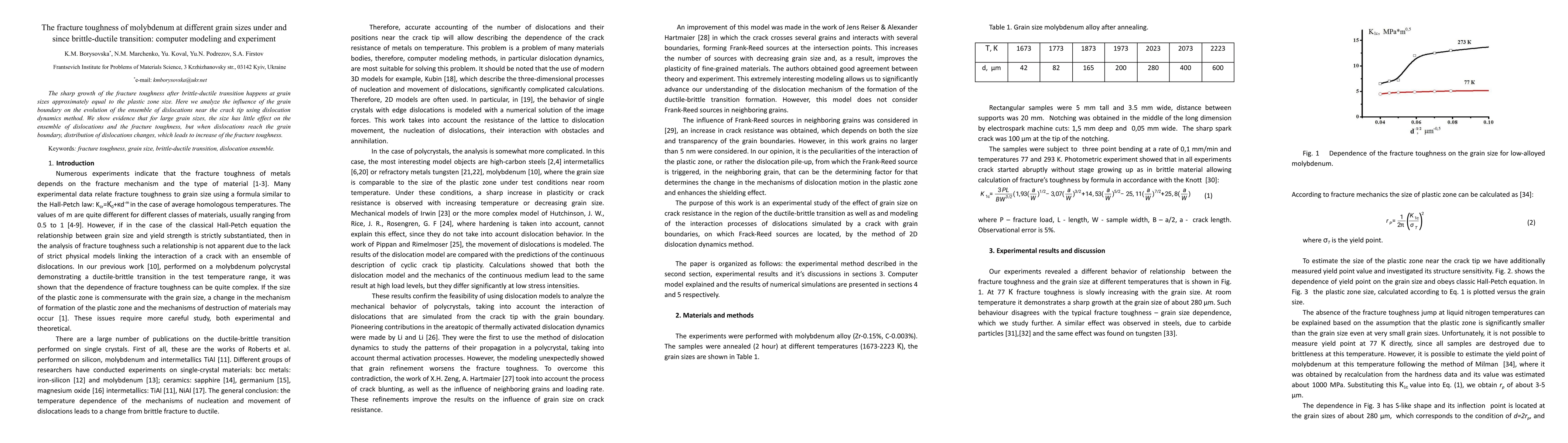 The work distinguishes itself by combining computer modeling with experimental data to elucidate the role of grain boundaries in dislocation dynamics and fracture toughness, offering a novel perspective on the brittle-ductile transition in molybdenum.