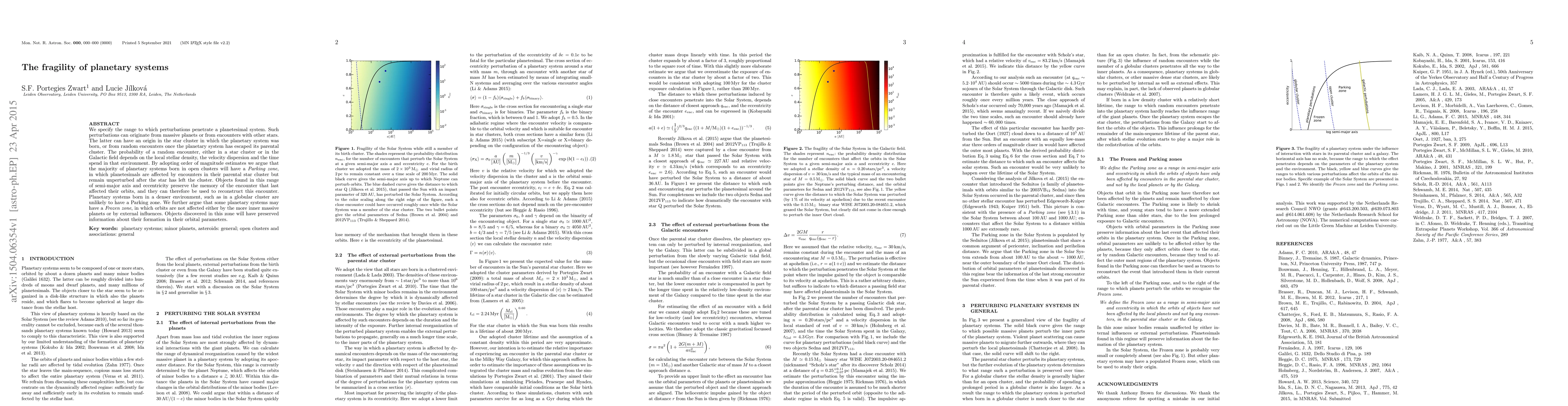 We specify the range to which perturbations penetrate a planetesimal system. Such perturbations can originate from massive planets or from encounters with other stars. The latter can have an origin in the star cluster in which the planetary system was born, or from random encounters once the planetary system has escaped its parental cluster. The probability of a random encounter, either in a star cluster or in the Galactic field depends on the local stellar density, the velocity dispersion and the time spend in that environment. By adopting order of magnitude estimates we argue that the majority of planetary systems born in open clusters will have a {\em Parking zone}, in which planetesimals are affected by encounters in their parental star cluster but remain unperturbed after the star has left the cluster. Objects found in this range of semi-major axis and eccentricity preserve the memory of the encounter that last affected their orbits, and they can therefore be used to reconstruct this encounter. Planetary systems born in a denser environment, such as in a globular cluster are unlikely to have a Parking zone. We further argue that some planetary systems may have a {\em Frozen zone}, in which orbits are not affected either by the more inner massive planets or by external influences. Objects discovered in this zone will have preserved information about their formation in their orbital parameters.