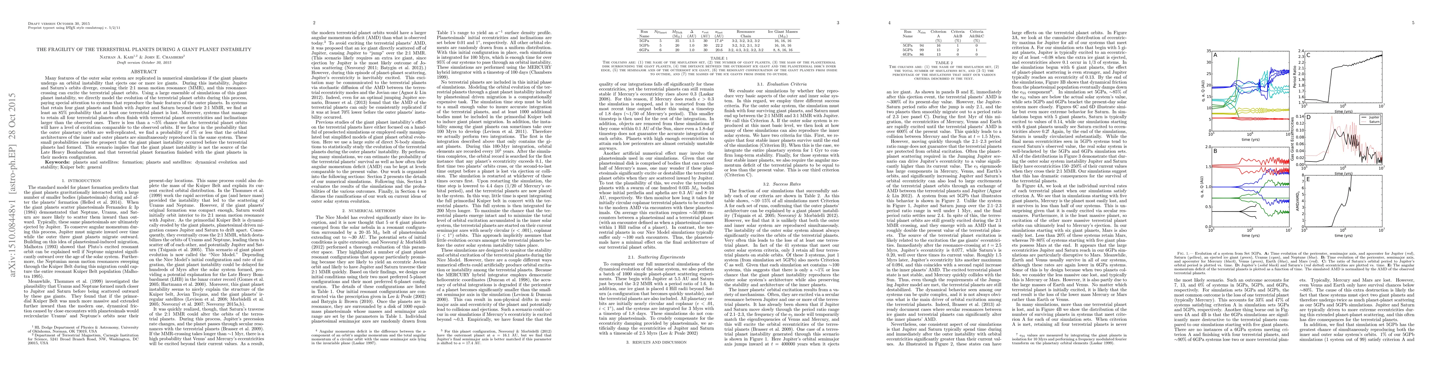 This study finds that during a giant planet instability, terrestrial planets are likely to be ejected or significantly altered, with only a 1% chance of retaining their current orbits and configurations. The results suggest that the giant planet instability likely occurred before terrestrial planets formed.