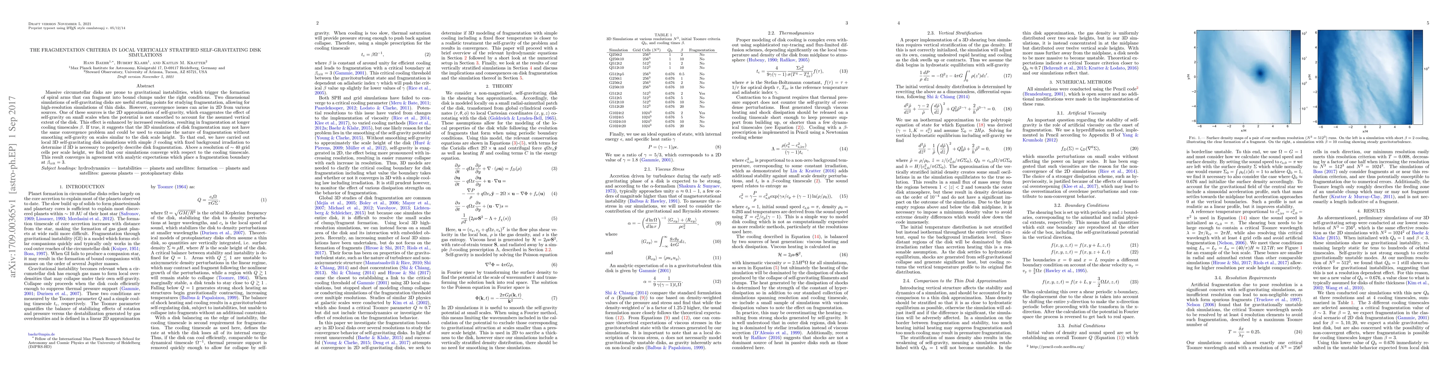 This paper investigates the convergence criteria in 2D and 3D self-gravitating disk simulations to study gravitational fragmentation. The study finds that 3D simulations converge at resolutions above 40 grid cells per scale height, suggesting that 3D simulations may better describe the fragmentation process without the convergence issues seen in 2D simulations.