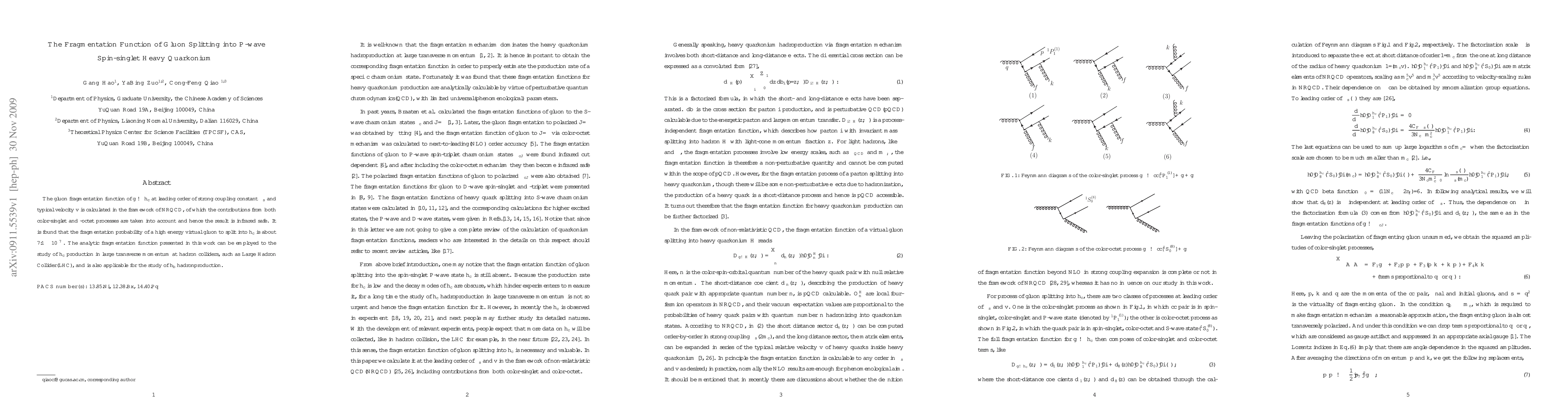 Researchers calculated the probability of a high-energy virtual gluon splitting into $h_c$ and found it to be about $7.1 imes 10^{-7}$, providing insights for studying heavy quarkonium production at large hadron colliders.