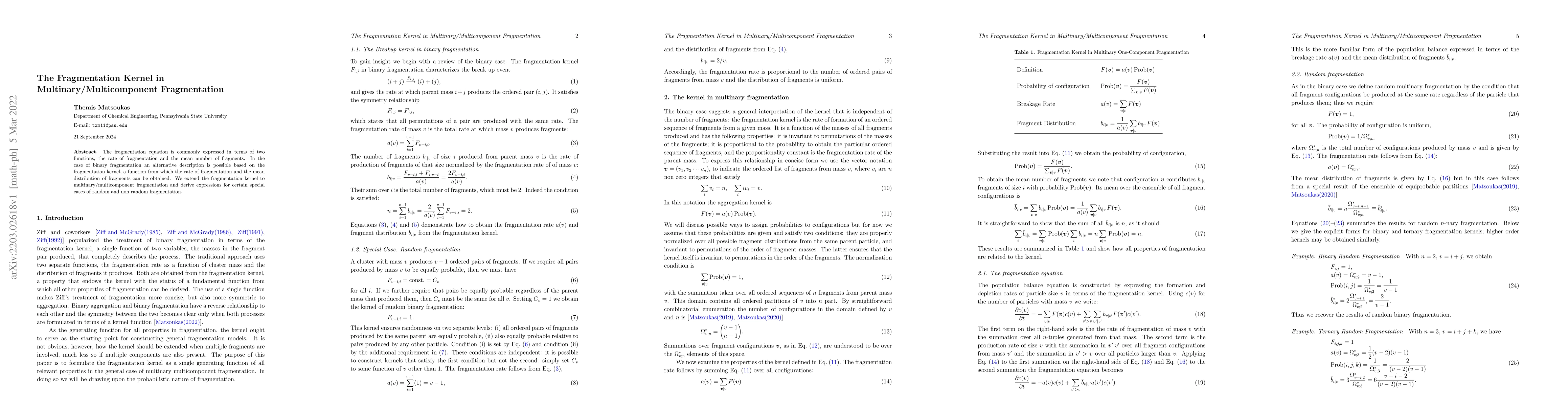 This paper extends the fragmentation kernel concept to multinary/multicomponent fragmentation, providing a function that determines both the fragmentation rate and fragment distribution, and derives expressions for both random and non-random fragmentation scenarios.