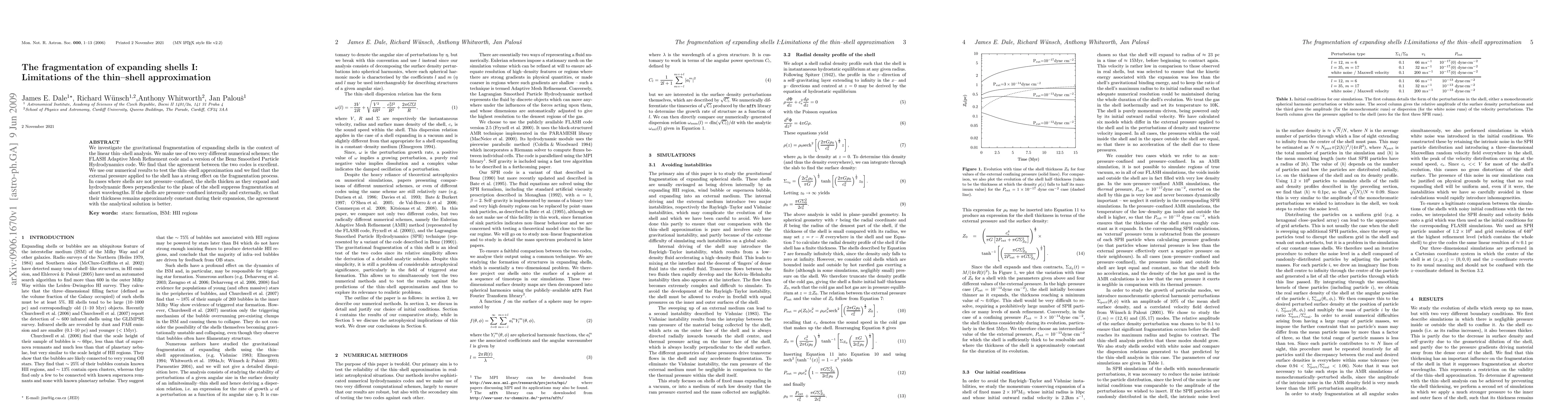We investigate the gravitational fragmentation of expanding shells in the context of the linear thin--shell analysis. We make use of two very different numerical schemes; the FLASH Adaptive Mesh Refinement code and a version of the Benz Smoothed Particle Hydrodynamics code. We find that the agreement between the two codes is excellent. We use our numerical results to test the thin--shell approximation and we find that the external pressure applied to the shell has a strong effect on the fragmentation process. In cases where shells are not pressure--confined, the shells thicken as they expand and hydrodynamic flows perpendicular to the plane of the shell suppress fragmentation at short wavelengths. If the shells are pressure--confined internally and externally, so that their thickness remains approximately constant during their expansion, the agreement with the analytical solution is better.