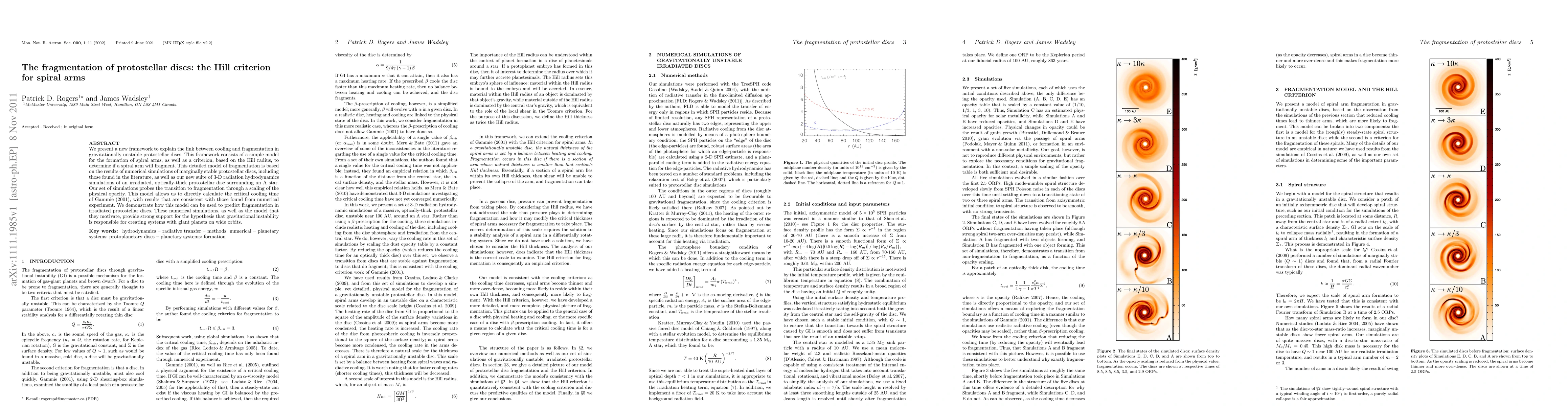 This paper introduces a new framework linking cooling and fragmentation in protostellar discs, proposing a Hill radius-based criterion to determine spiral arm fragmentation. The model, supported by numerical simulations, suggests gravitational instability drives the formation of systems with giant planets on wide orbits.