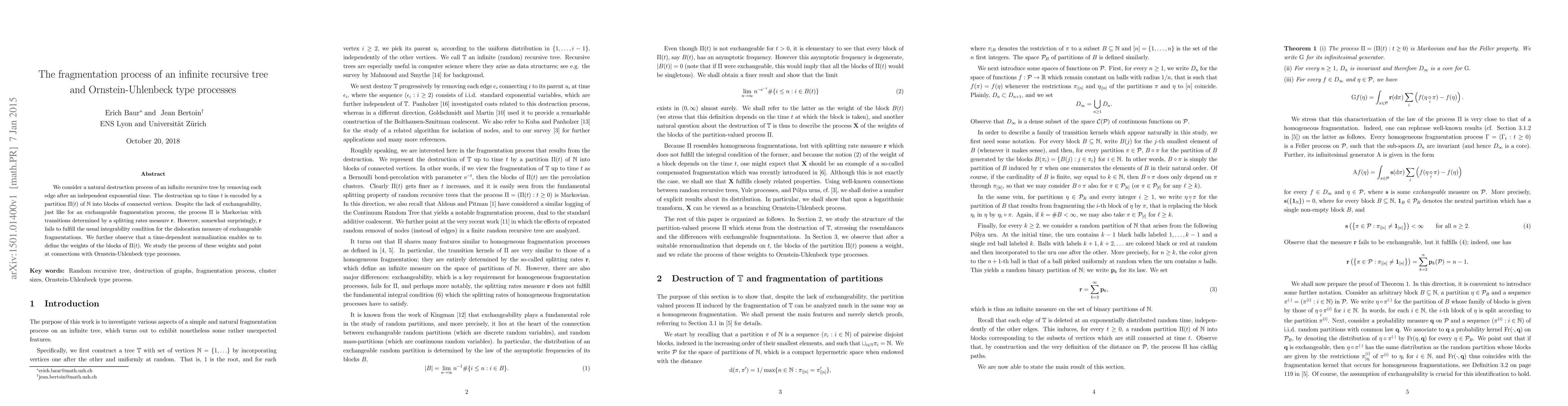 This paper explores the destruction of an infinite recursive tree by removing edges after independent exponential times, resulting in a fragmentation process encoded by a partition $\Pi$(t). Despite the lack of exchangeability, the process $\Pi$ exhibits Markovian properties, but its splitting rates measure r does not meet the usual integrability condition. The study also reveals connections between the evolving weights of the partition blocks and Ornstein-Uhlenbeck type processes.