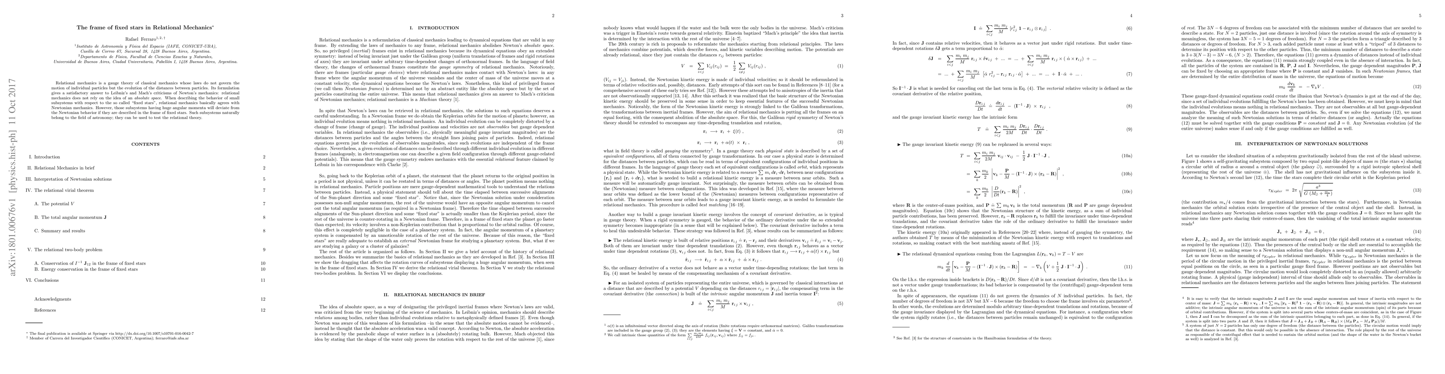 Relational mechanics offers a gauge theory of classical mechanics focusing on the evolution of distances between particles rather than individual particle motions, addressing criticisms of absolute space in Newton's mechanics. While it aligns with Newtonian mechanics for small subsystems, it diverges for those with large angular momenta when observed in the frame of fixed stars, providing a testable framework for astronomical systems.