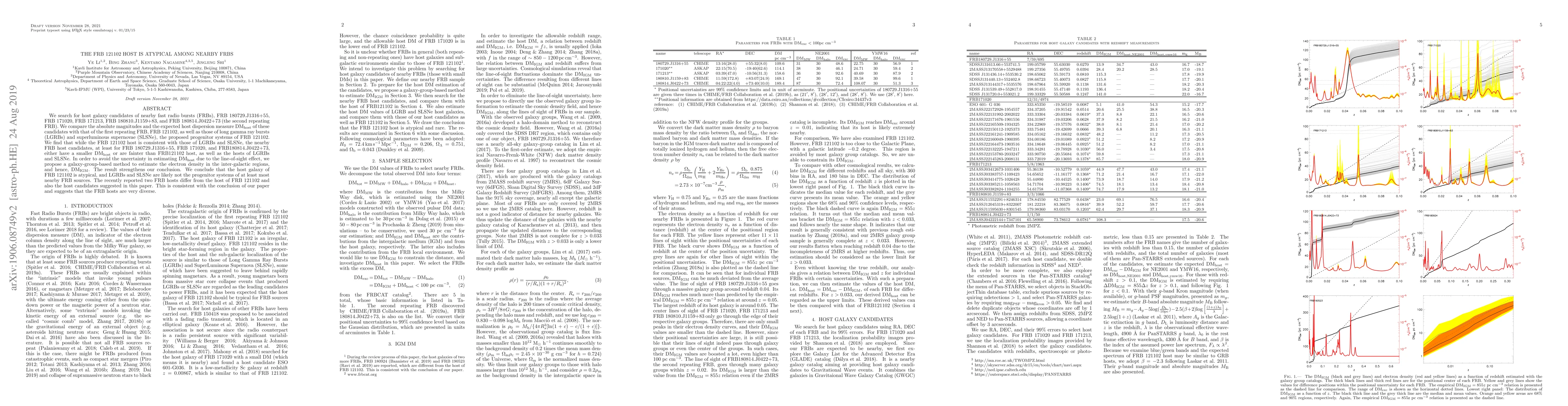 We search for host galaxy candidates of nearby fast radio bursts (FRBs), FRB 180729.J1316+55, FRB 171020, FRB 171213, FRB 180810.J1159+83, and FRB 180814.J0422+73 (the second repeating FRB). We compare the absolute magnitudes and the expected host dispersion measure $\rm DM_{host}$ of these candidates with that of the first repeating FRB, FRB 121102, as well as those of long gamma ray bursts (LGRBs) and superluminous supernovae (SLSNe), the proposed progenitor systems of FRB 121102. We find that while the FRB 121102 host is consistent with those of LGRBs and SLSNe, the nearby FRB host candidates, at least for FRB 180729.J1316+55, FRB 171020, and FRB180814.J0422+73, either have a smaller $\rm DM_{host}$ or are fainter than FRB121102 host, as well as the hosts of LGRBs and SLSNe. In order to avoid the uncertainty in estimating $\rm DM_{host}$ due to the line-of-sight effect, we propose a galaxy-group-based method to estimate the electron density in the inter-galactic regions, and hence, $\rm DM_{IGM}$. The result strengthens our conclusion. We conclude that the host galaxy of FRB 121102 is atypical, and LGRBs and SLSNe are likely not the progenitor systems of at least most nearby FRB sources. {The recently reported two FRB hosts differ from the host of FRB 121102 and also the host candidates suggested in this paper. This is consistent with the conclusion of our paper and suggests that the FRB hosts are very diverse. }