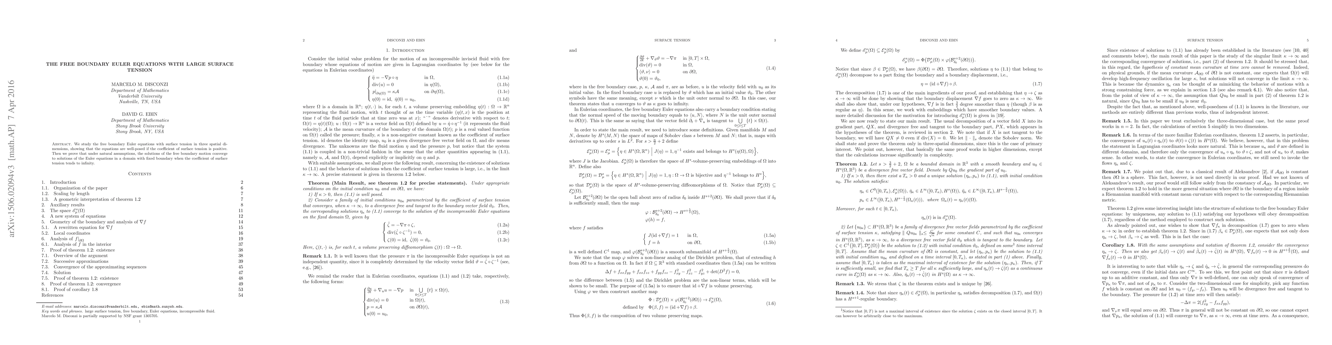 This paper investigates the well-posedness of the free boundary Euler equations with surface tension in three dimensions and demonstrates that solutions converge to those of the Euler equations with a fixed boundary as surface tension approaches infinity.