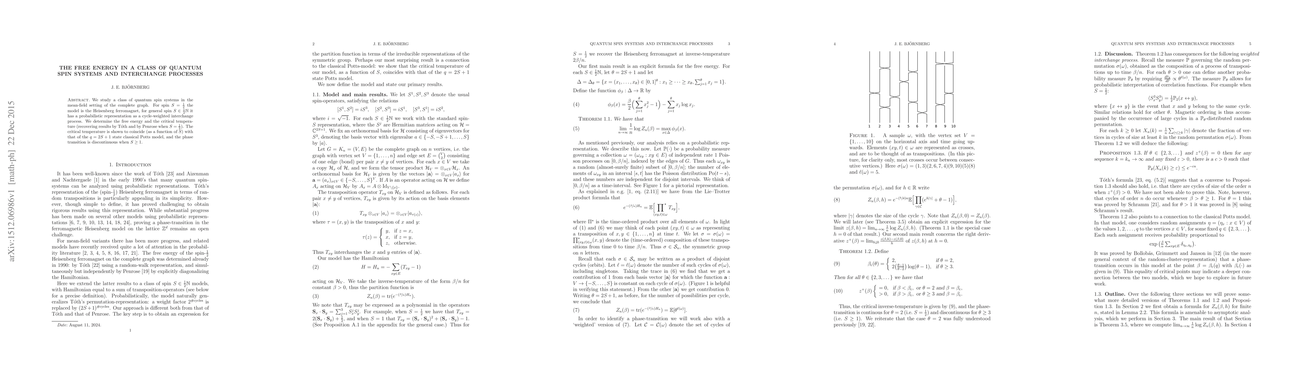 This paper investigates a class of quantum spin systems represented by a cycle-weighted interchange process, determining their free energy and critical temperature. The critical temperature matches that of the classical Potts model, with a discontinuous phase transition for spins $S \geq 1$.