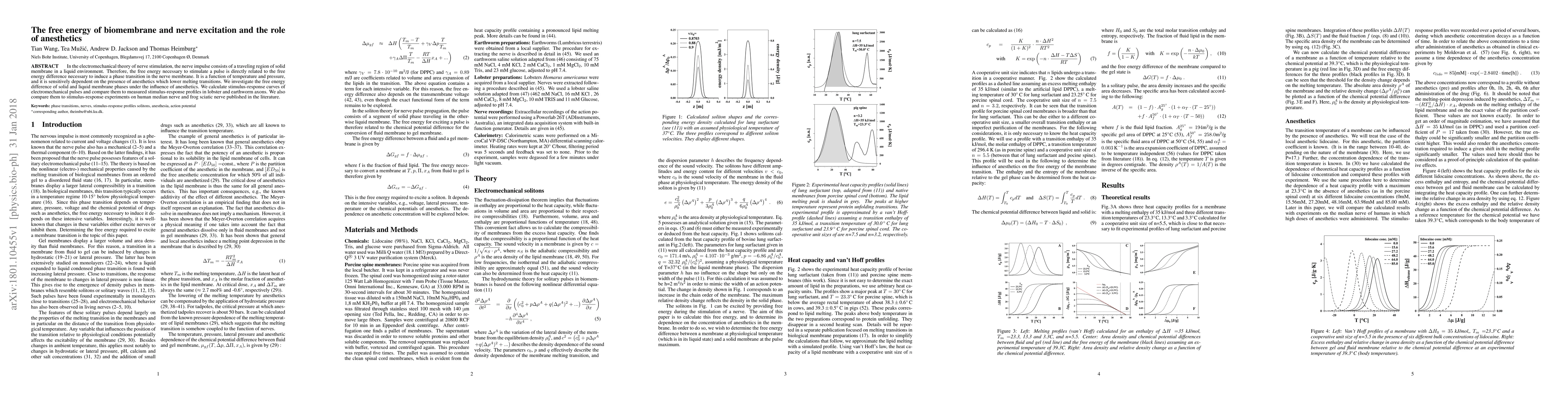 This paper explores the free energy dynamics of biomembranes during nerve excitation, focusing on the phase transition effects induced by anesthetics. It investigates the free energy difference between solid and liquid membrane phases under anesthetic influence and correlates these findings with experimental nerve stimulation data from various species.