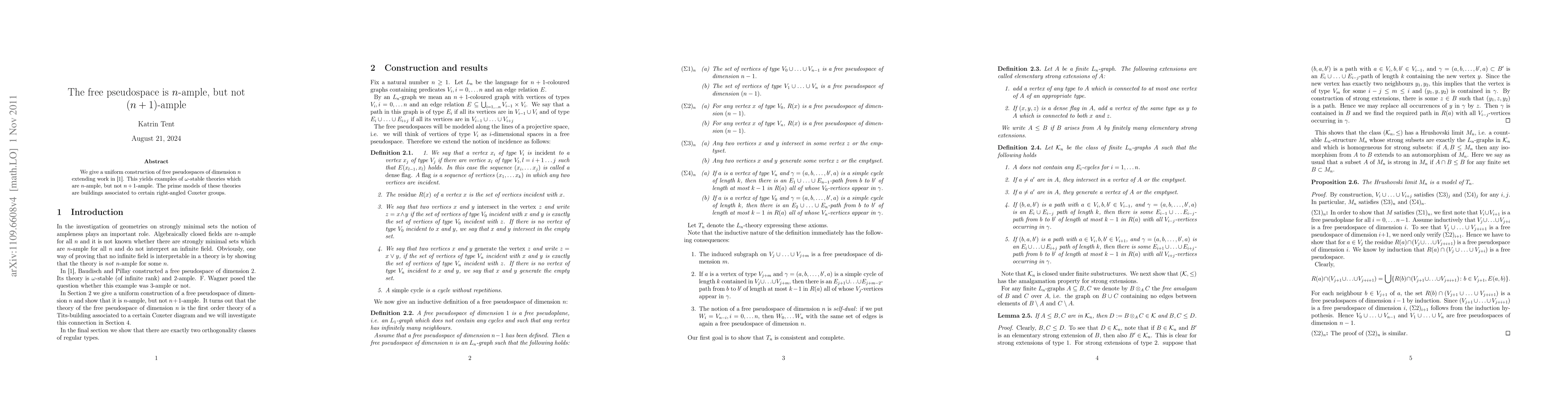 We give a uniform construction of free pseudospaces of dimension n extending work by Baudisch and Pillay. This yields examples of $\omega$-stable theories which are n-ample, but not (n+1)-ample. The prime models of these theories are buildings associated to certain right-angled Coxeter groups.