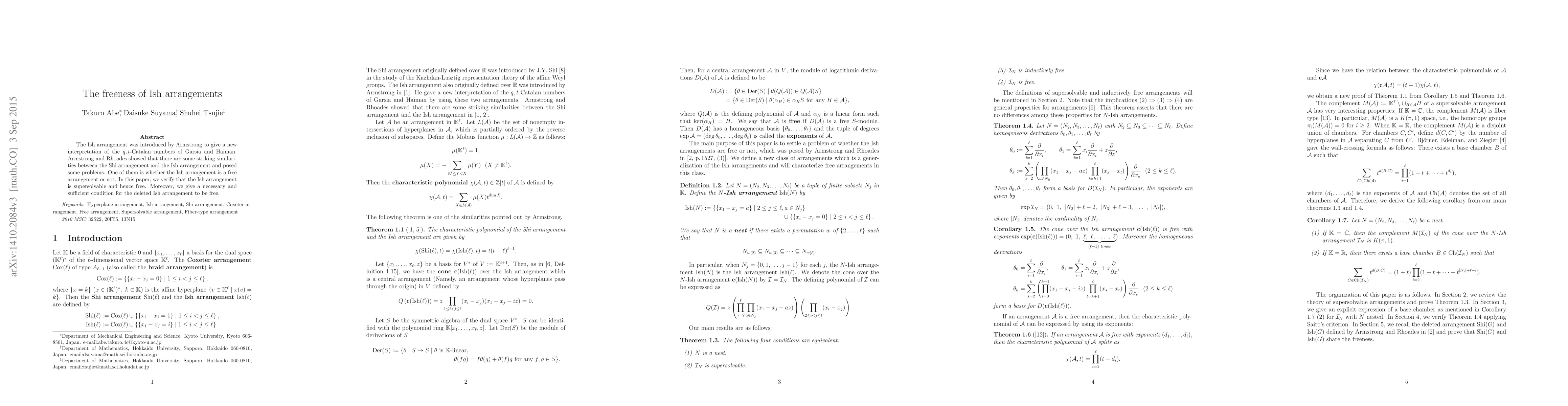 The work extends previous research on free arrangements by Armstrong, Rhoades, and others by focusing on the specific Ish arrangement and providing a novel condition for its deleted form to be free.