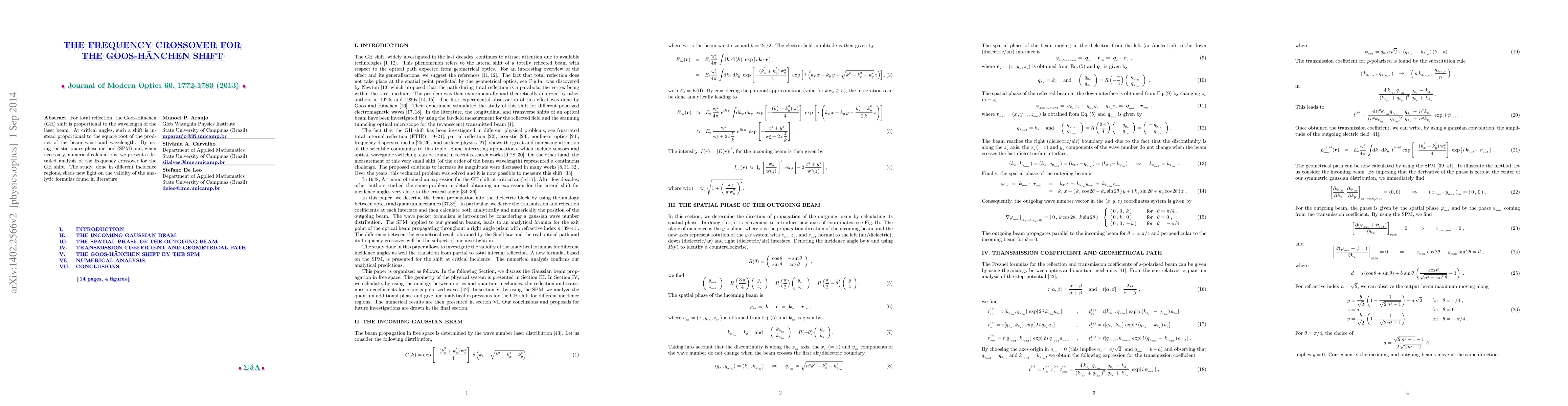 This paper analyzes the frequency crossover for the Goos-Hanchen shift, revealing how its proportionality changes from linear to square root dependence on wavelength and beam waist at critical angles. The study validates existing analytic formulas through detailed analysis using the stationary phase method and numerical calculations.
