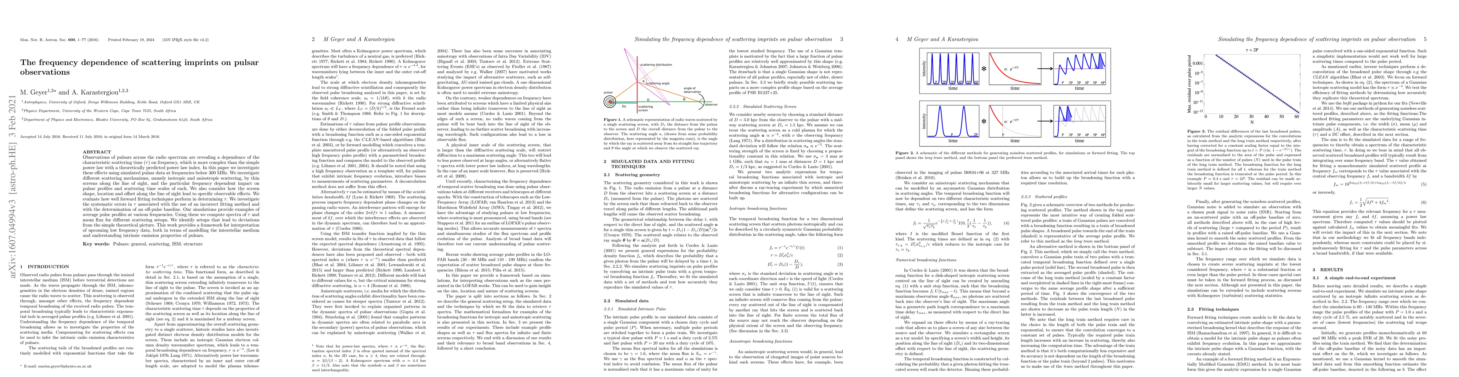 Observations of pulsars across the radio spectrum are revealing a dependence of the characteristic scattering time ($\tau$) on frequency, which is more complex than the simple power law with a theoretically predicted power law index. In this paper we investigate these effects using simulated pulsar data at frequencies below 300 MHz. We investigate different scattering mechanisms, namely isotropic and anisotropic scattering, by thin screens along the line of sight, and the particular frequency dependent impact on pulsar profiles and scattering time scales of each. We also consider how the screen shape, location and offset along the line of sight lead to specific observable effects. We evaluate how well forward fitting techniques perform in determining $\tau$. We investigate the systematic errors in $\tau$ associated with the use of an incorrect fitting method and with the determination of an off-pulse baseline. Our simulations provide examples of average pulse profiles at various frequencies. Using these we compute spectra of $\tau$ and mean flux for different scattering setups. We identify setups that lead to deviations from the simple theoretical picture. This work provides a framework for interpretation of upcoming low frequency data, both in terms of modelling the interstellar medium and understanding intrinsic emission properties of pulsars.
