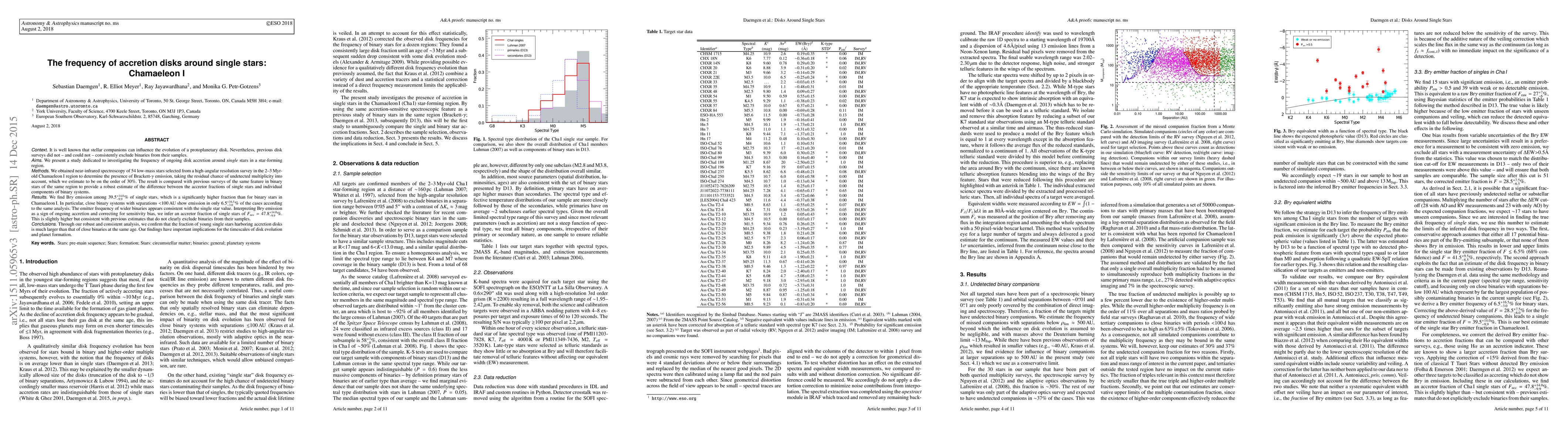 This study investigates the frequency of accretion disks around single stars in the Chamaeleon I region, finding that 47.8% of single stars exhibit ongoing accretion, significantly higher than the 6.5% observed in close binary systems. This suggests that single stars have a much larger fraction of accretion disks compared to close binaries, impacting our understanding of disk evolution and planet formation.