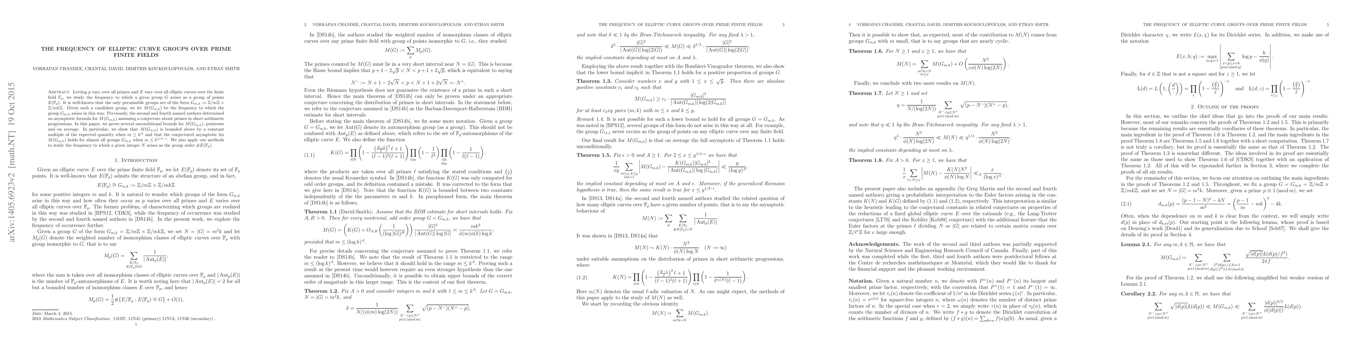 Researchers studied how often a specific group of points appears on elliptic curves over finite fields and found bounds for the frequency, including an asymptotic formula that holds for almost all groups.