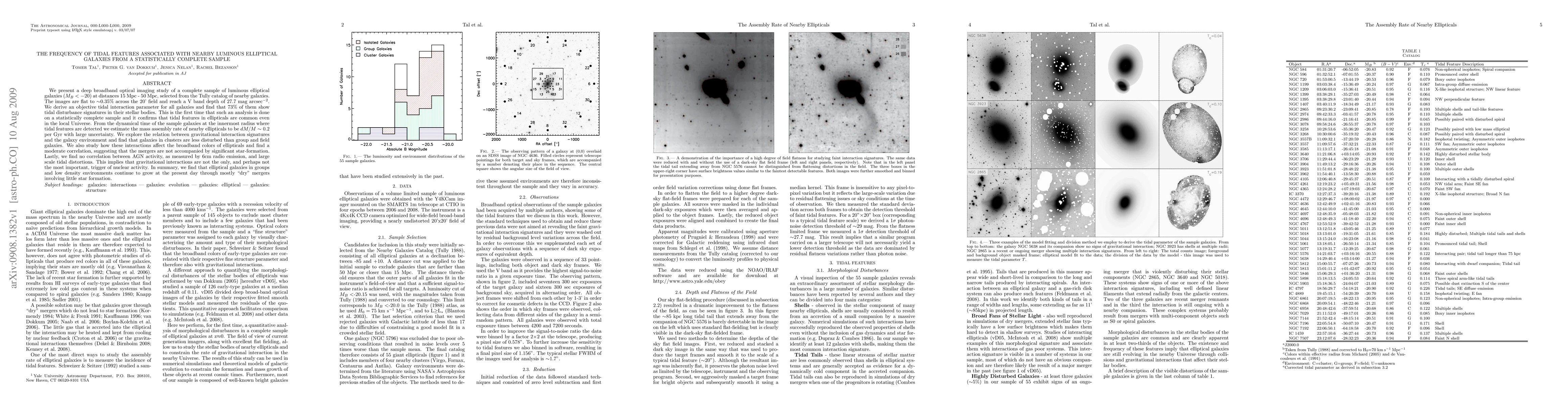 This study reveals that 73% of luminous elliptical galaxies in a statistically complete sample show tidal disturbance signatures, indicating common tidal features in local ellipticals. The research also finds that galaxies in clusters are less disturbed than those in groups and fields, suggesting that "dry" mergers with minimal star formation drive the growth of ellipticals in low-density environments.