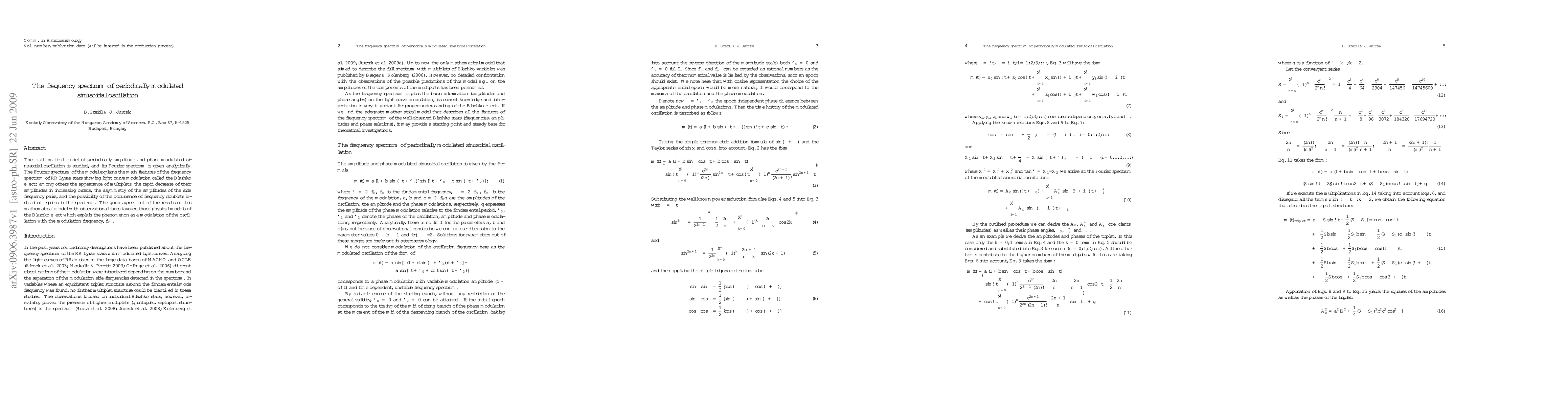 The mathematical model of periodically amplitude and phase modulated sinusoidal oscillation is studied, and its Fourier spectrum is given analytically. The Fourier spectrum of the model explains the main features of the frequency spectrum of RR Lyrae stars showing light curve modulation called the Blazhko effect: among others the appearance of multiplets, the rapid decrease of their amplitudes in increasing orders, the asymmetry of the amplitudes of the side frequency pairs, and the possibility of the occurrence of frequency doublets instead of triplets in the spectrum. The good agreement of the results of this mathematical model with observational facts favours those physical models of the Blazhko effect which explain the phenomenon as a modulation of the oscillation with the modulation frequency, f_m.
