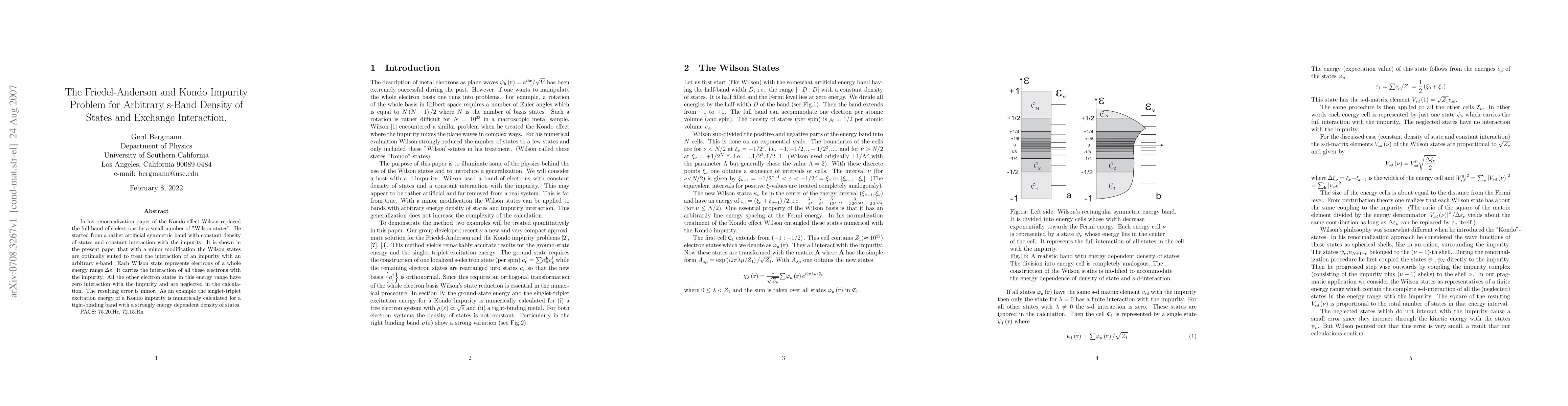 In his renormalization paper of the Kondo effect Wilson replaced the full band of s-electrons by a small number of ''Wilson states''. He started from a rather artificial symmetric band with constant density of states and constant interaction with the impurity. It is shown in the present paper that with a minor modification the Wilson states are optimally suited to treat the interaction of an impurity with an arbitrary s-band. Each Wilson state represents electrons of a whole energy range. It carries the interaction of all these electrons with the impurity. All the other electron states in this energy range have zero interaction with the impurity and are neglected in the calculation. The resulting error is minor. As an example the singlet-triplet excitation energy of a Kondo impurity is numerically calculated for a tight-binding band with a strongly energy dependent density of states.