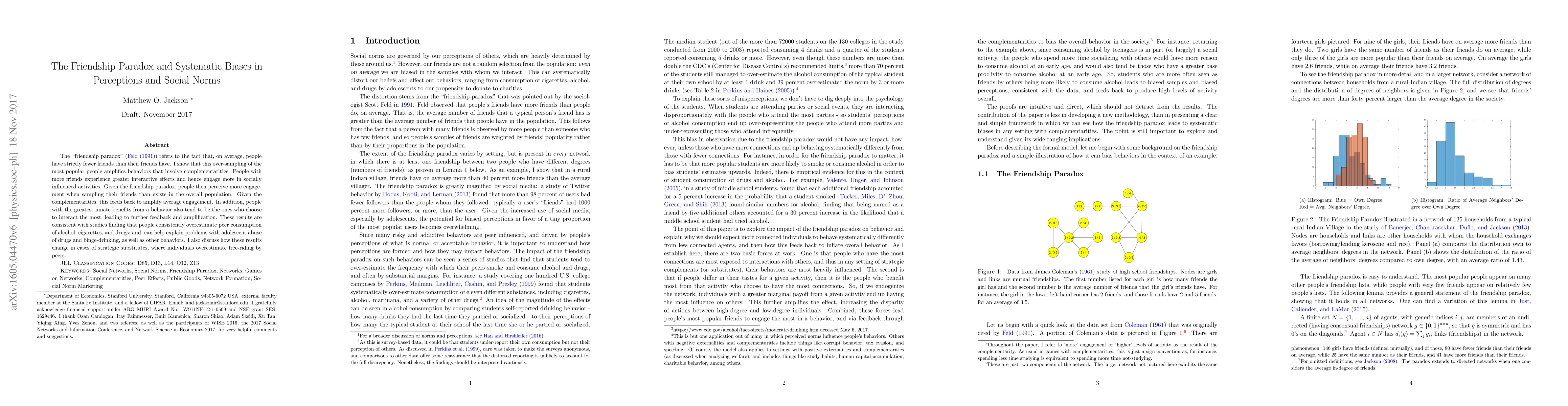 The "friendship paradox" (Feld1991) refers to the fact that, on average, people have strictly fewer friends than their friends have. I show that this over-sampling of the most popular people amplifies behaviors that involve complementarities. People with more friends experience greater interactive effects and hence engage more in socially influenced activities. Given the friendship paradox, people then perceive more engagement when sampling their friends than exists in the overall population. Given the complementarities, this feeds back to amplify average engagement. In addition, people with the greatest innate benefits from a behavior also tend to be the ones who choose to interact the most, leading to further feedback and amplification. These results are consistent with studies finding that people consistently overestimate peer consumption of alcohol, cigarettes, and drugs; and, can help explain problems with adolescent abuse of drugs and binge-drinking, as well as other behaviors. I also discuss how these results change in cases of strategic substitutes, where individuals overestimate free-riding by peers.