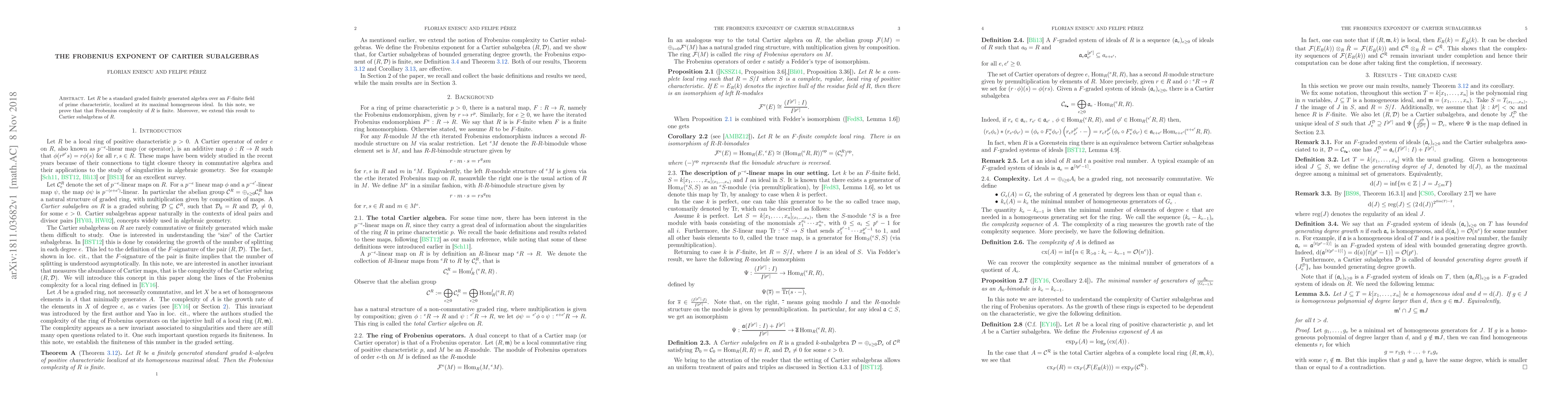 Let $R$ be a standard graded finitely generated algebra over an $F$-finite field of prime characteristic, localized at its maximal homogeneous ideal. In this note, we prove that that Frobenius complexity of $R$ is finite. Moreover, we extend this result to Cartier subalgebras of $R$.