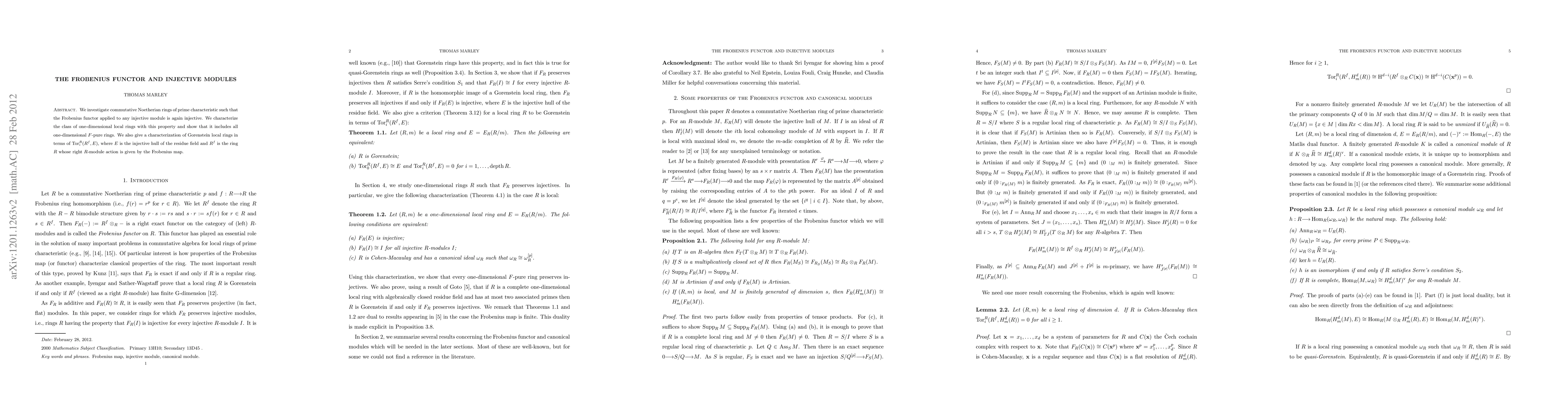 This paper explores commutative Noetherian rings in prime characteristic where the Frobenius functor preserves injectivity of modules. It characterizes one-dimensional local rings with this property and proves that it encompasses all one-dimensional F-pure rings.