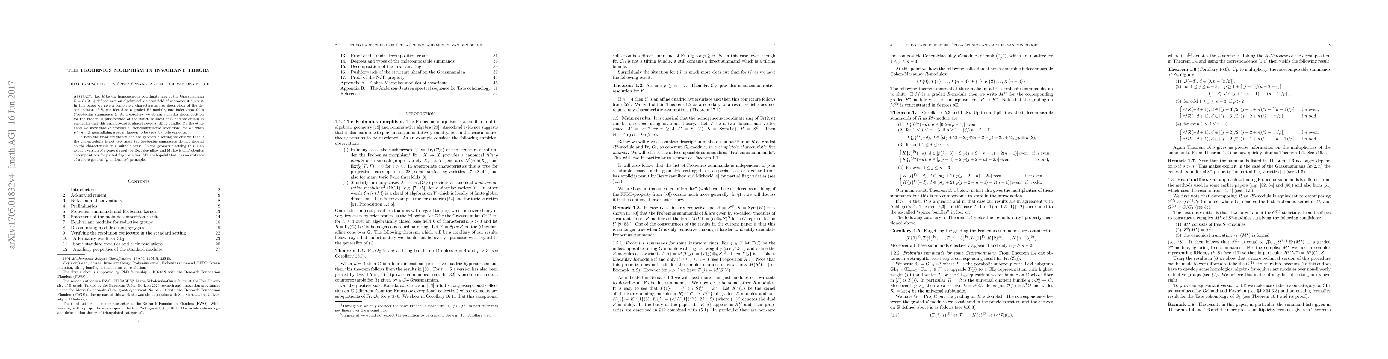 Let $R$ be the homogeneous coordinate ring of the Grassmannian $\mathbb{G}=\operatorname{Gr}(2,n)$ defined over an algebraically closed field of characteristic $p>0$. In this paper we give a completely characteristic free description of the decomposition of $R$, considered as a graded $R^p$-module, into indecomposables ("Frobenius summands"). As a corollary we obtain a similar decomposition for the Frobenius pushforward of the structure sheaf of $\mathbb{G}$ and we obtain in particular that this pushforward is almost never a tilting bundle. On the other hand we show that $R$ provides a "noncommutative resolution" for $R^p$ when $p\ge n-2$, generalizing a result known to be true for toric varieties. In both the invariant theory and the geometric setting we observe that if the characteristic is not too small the Frobenius summands do not depend on the characteristic in a suitable sense. In the geometric setting this is an explicit version of a general result by Bezrukavnikov and Mirkovi\'c on Frobenius decompositions for partial flag varieities. We are hopeful that it is an instance of a more general "$p$-uniformity" principle.