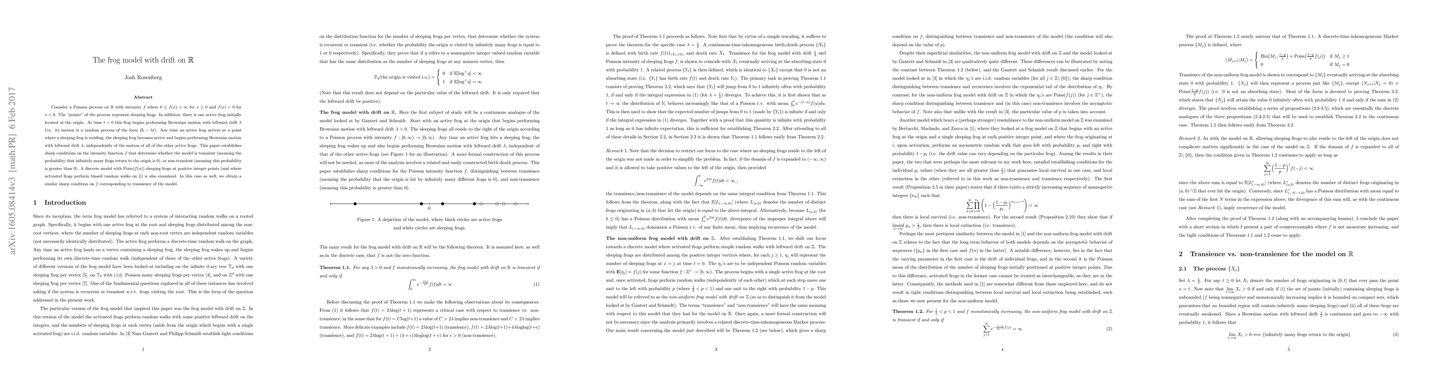 This paper studies a frog model on $\mathbb{R}$ where a Poisson process represents sleeping frogs, and an active frog with leftward drift activates sleeping frogs upon contact. It determines conditions on the intensity function $f$ that determine whether the model is transient or non-transient, and similarly analyzes a discrete version on $\mathbb{Z}$.