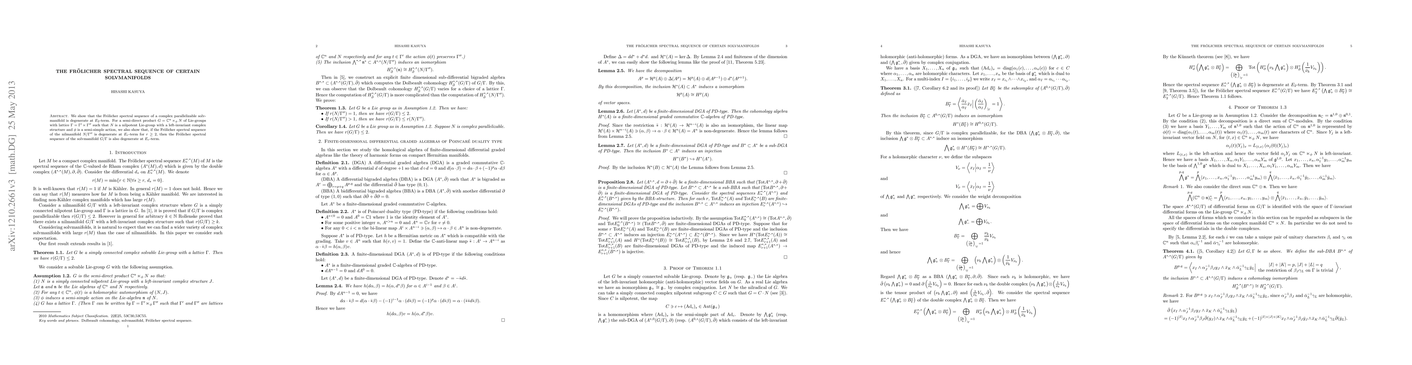 We show that the Fr\"olicher spectral sequence of a complex parallelizable solvmanifold is degenerate at $E_{2}$-term. For a semi-direct product $G=\C^{n}\ltimes_{\phi}N$ of Lie-groups with lattice $\Gamma=\Gamma^{\prime}\ltimes \Gamma^{\prime\prime}$ such that $N$ is a nilpotent Lie-group with a left-invariant complex structure and $\phi$ is a semi-simple action, we also show that, if the Fr\"olicher spectral sequence of the nilmanifold $N/\Gamma^{\prime\prime}$ is degenerate at $E_{r}$-term for $r\ge 2$, then the Fr\"olicher spectral sequence of the solvmanifold $G/\Gamma$ is also degenerate at $E_{r}$-term.