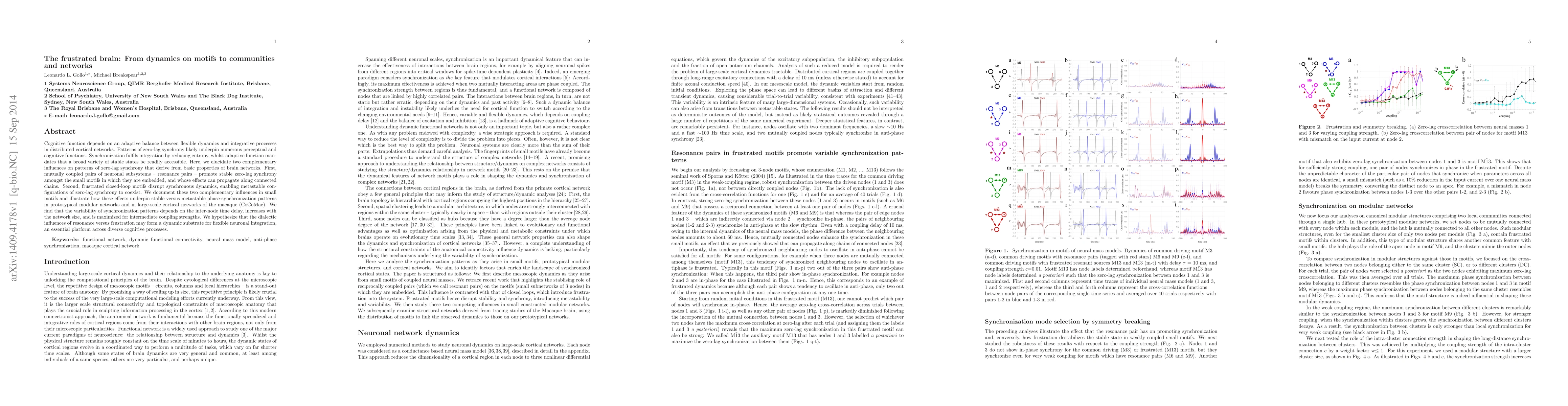 Cognitive function depends on an adaptive balance between flexible dynamics and integrative processes in distributed cortical networks. Patterns of zero-lag synchrony likely underpin numerous perceptual and cognitive functions. Synchronization fulfils integration by reducing entropy, whilst adaptive function mandates that a broad variety of stable states be readily accessible. Here, we elucidate two complementary influences on patterns of zero-lag synchrony that derive from basic properties of brain networks. First, mutually coupled pairs of neuronal subsystems -- resonance pairs -- promote stable zero-lag synchrony amongst the small motifs in which they are embedded, and whose effects can propagate along connected chains. Second, frustrated closed-loop motifs disrupt synchronous dynamics, enabling metastable configurations of zero-lag synchrony to coexist. We document these two complementary influences in small motifs and illustrate how these effects underpin stable versus metastable phase-synchronization patterns in prototypical modular networks and in large-scale cortical networks of the macaque (CoCoMac). We find that the variability of synchronization patterns depends on the inter-node time delay, increases with the network size, and is maximized for intermediate coupling strengths. We hypothesize that the dialectic influences of resonance versus frustration may form a dynamic substrate for flexible neuronal integration, an essential platform across diverse cognitive processes.