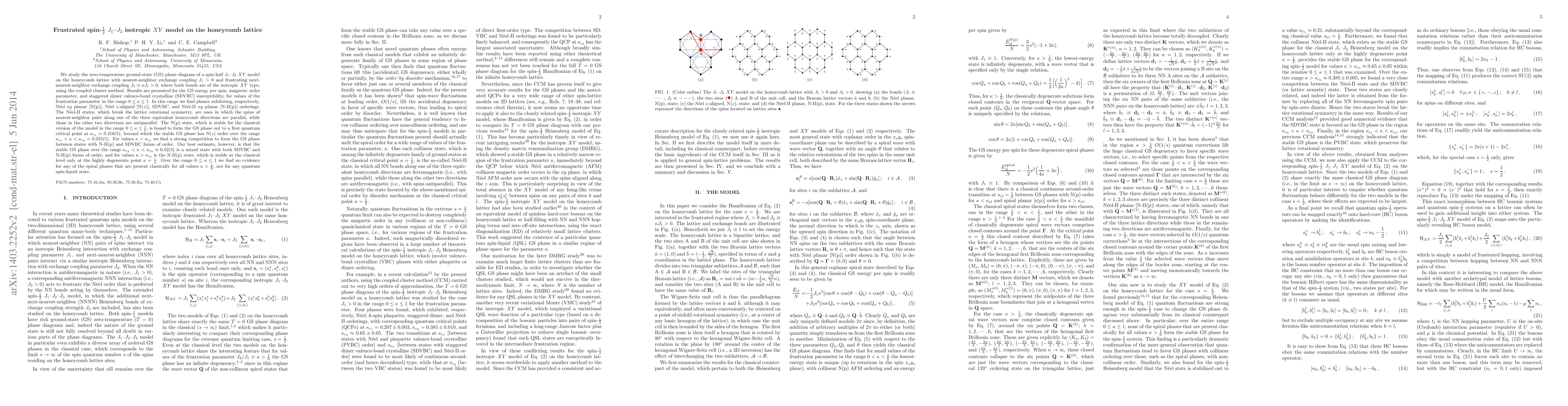 We study the zero-temperature ground-state (GS) phase diagram of a spin-half $J_{1}$--$J_{2}$ $XY$ model on the honeycomb lattice with nearest-neighbor exchange coupling $J_{1}>0$ and frustrating next-nearest-neighbor exchange coupling $J_{2} \equiv \kappa J_{1}>0$, where both bonds are of the isotropic $XY$ type, using the coupled cluster method. Results are presented for the GS energy per spin, magnetic order parameter, and staggered dimer valence-bond crystalline (SDVBC) susceptibility, for values of the frustration parameter in the range $0 \leq \kappa \leq 1$. In this range we find phases exhibiting, respectively, N\'{e}el $xy$ planar [N(p)], N\'{e}el $z$-aligned [N($z$)], SDVBC, and N\'{e}el-II $xy$ planar [N-II(p)] orderings which break the lattice rotational symmetry. The N(p) state, which is stable for the classical version of the model in the range $0 \leq \kappa \leq \frac{1}{6}$, is found to form the GS phase out to a first quantum critical point at $\kappa_{c_{1}} = 0.216(5)$, beyond which the stable GS phase has N($z$) order over the range $\kappa_{c_{1}} < \kappa < \kappa_{c_{2}}=0.355(5)$. For values $\kappa > \kappa_{c_{2}}$ we find a strong competition to form the GS phase between states with N-II(p) and SDVBC forms of order. Our best estimate, however, is that the stable GS phase over the range $\kappa_{c_{2}} < \kappa < \kappa_{c_{3}} \approx 0.52(3)$ is a mixed state with both SDVBC and N-II(p) forms of order; and for values $\kappa > \kappa_{c_{3}}$ is the N-II(p) state, which is stable at the classical level only at the highly degenerate point $\kappa=\frac{1}{2}$. Over the range $0 \leq \kappa \leq 1$ we find no evidence for any of the spiral phases that are present classically for all values $\kappa > \frac{1}{6}$, nor for any quantum spin-liquid state.