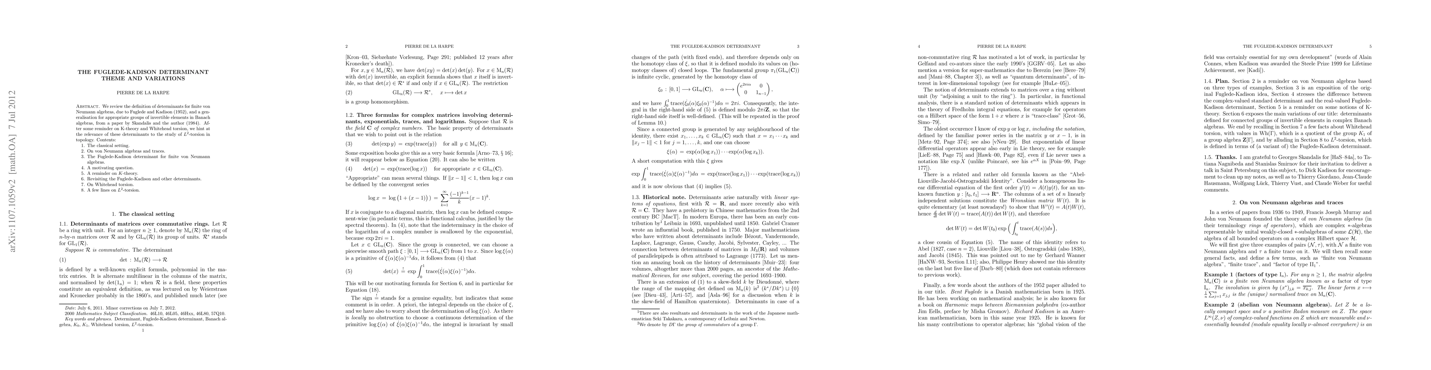 This paper reviews the Fuglede-Kadison determinant for finite von Neumann algebras and its generalization to Banach algebras, highlighting its connection to $L^2$-torsion in topology and its relevance in the study of K-theory and Whitehead torsion.
