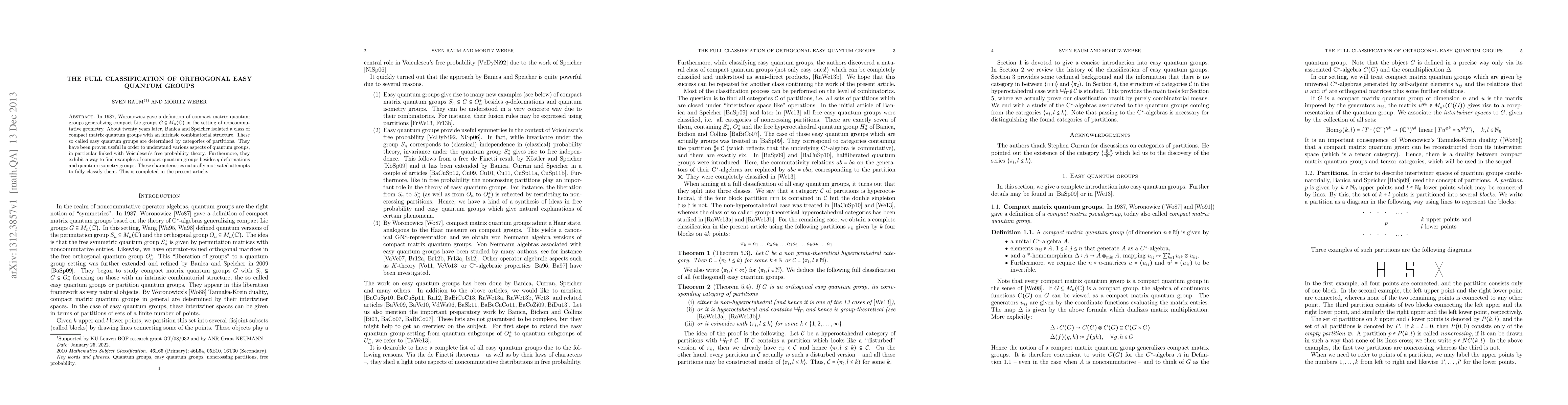 This paper completes the full classification of orthogonal easy quantum groups, which are compact matrix quantum groups defined by categories of partitions, providing insights into quantum groups and linking them with Voiculescu's free probability theory. The classification extends beyond traditional q-deformations and quantum isometry groups.