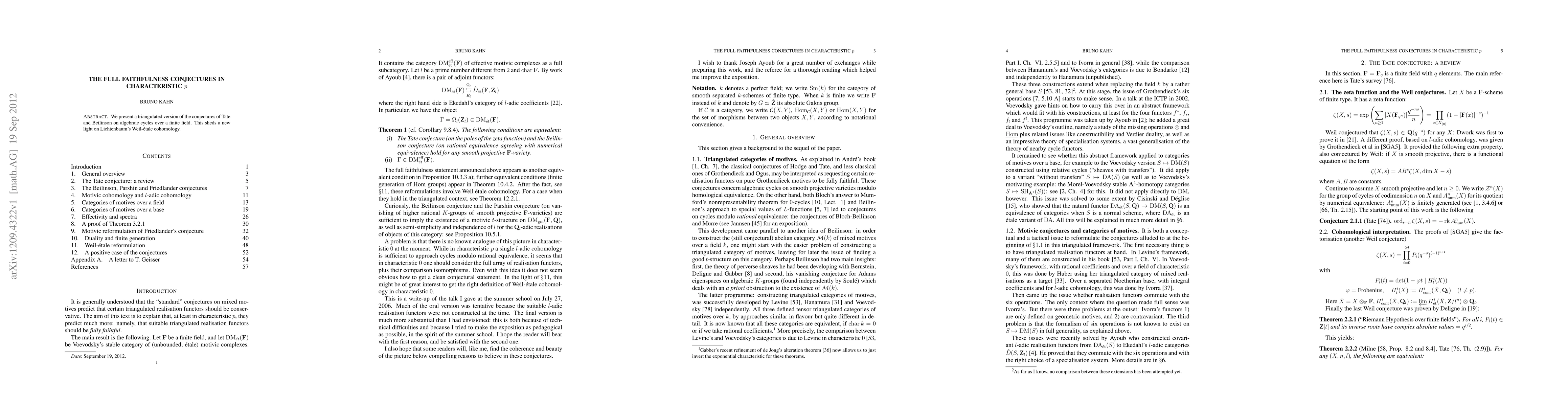 We present a triangulated version of the conjectures of Tate and Beilinson on algebraic cycles over a finite field. This sheds a new light on Lichtenbaum's Weil-etale cohomology.