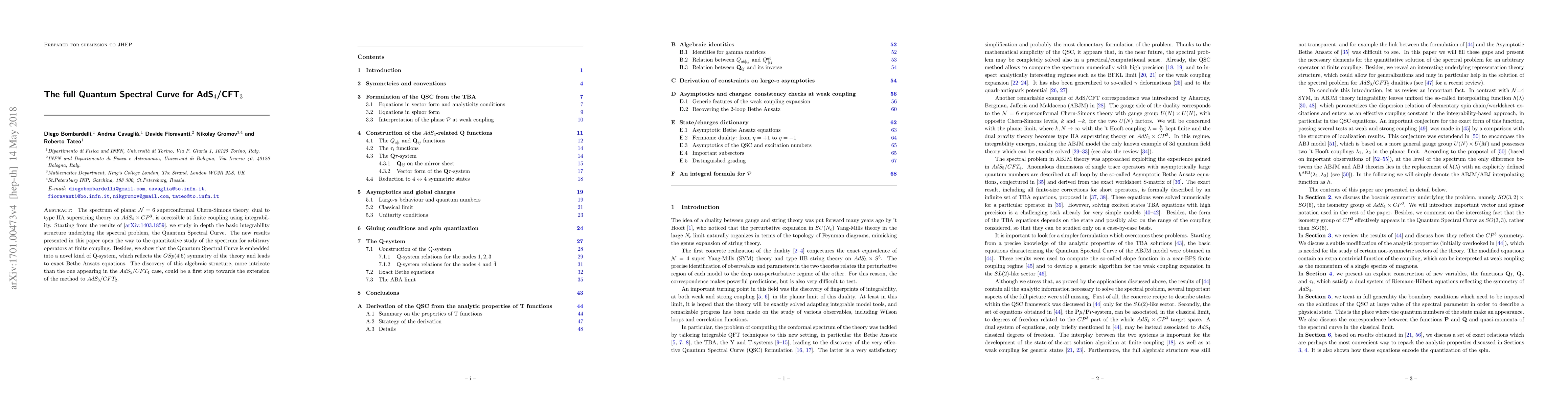 The spectrum of planar N=6 superconformal Chern-Simons theory, dual to type IIA superstring theory on $AdS_4 \times CP^3$, is accessible at finite coupling using integrability. Starting from the results of [arXiv:1403.1859], we study in depth the basic integrability structure underlying the spectral problem, the Quantum Spectral Curve. The new results presented in this paper open the way to the quantitative study of the spectrum for arbitrary operators at finite coupling. Besides, we show that the Quantum Spectral Curve is embedded into a novel kind of Q-system, which reflects the OSp(4|6) symmetry of the theory and leads to exact Bethe Ansatz equations. The discovery of this algebraic structure, more intricate than the one appearing in the $AdS_5/CFT_4$ case, could be a first step towards the extension of the method to $AdS_3/CFT_2$.