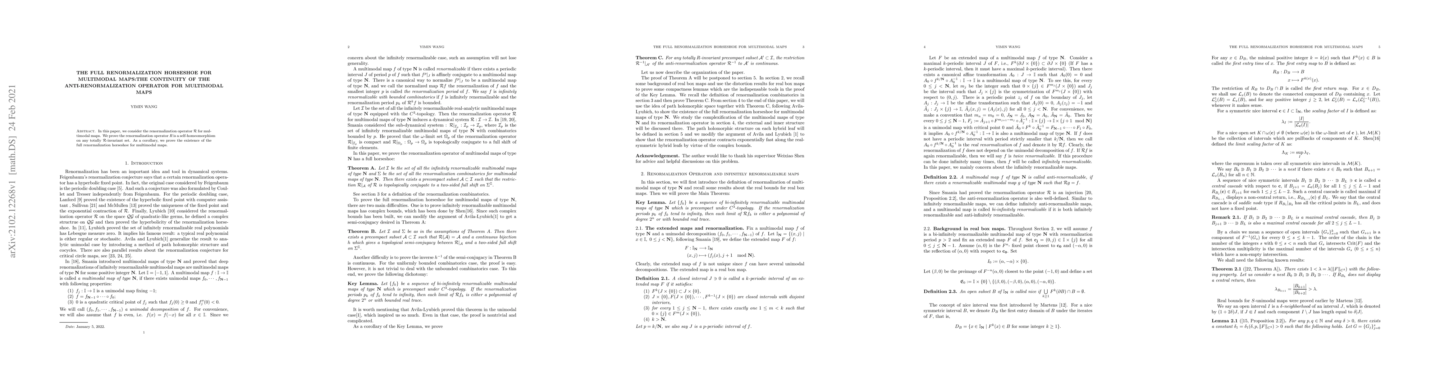 The paper introduces a rigorous proof of the self-homeomorphism property of the renormalization operator for multimodal maps, extending previous work on unimodal maps.