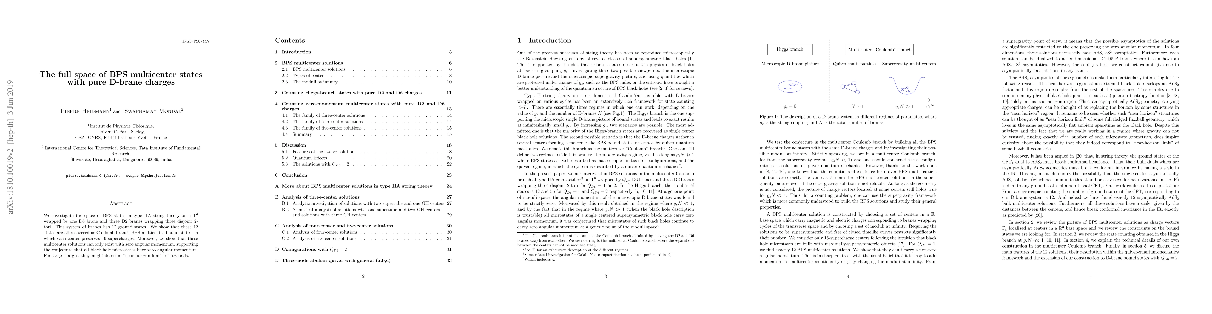 We investigate the space of BPS states in type IIA string theory on a T$^6$ wrapped by one D6 brane and three D2 branes wrapping three disjoint 2-tori. This system of branes has 12 ground states. We show that these 12 states are all recovered as Coulomb branch BPS multicenter bound states, in which each center preserves 16 supercharges. Moreover, we show that these multicenter solutions can only exist with zero angular momentum, supporting the conjecture that all black hole microstates have zero angular momentum. For large charges, they might describe "near-horizon limit" of fuzzballs.