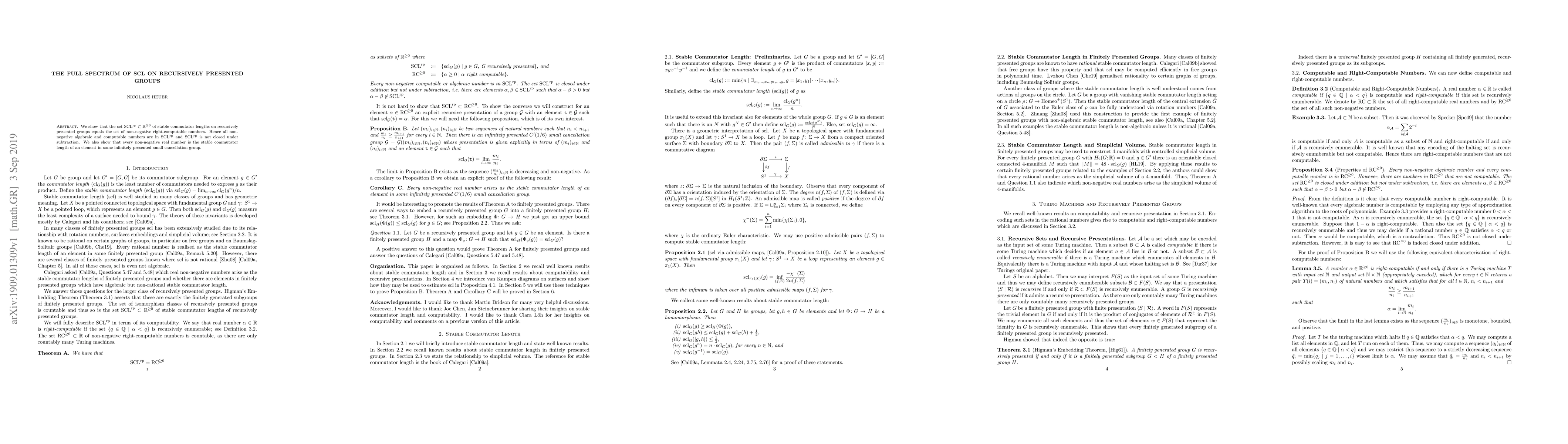 Summary: The paper demonstrates that the set $SCL^{rp}$ of stable commutator lengths on recursively presented groups corresponds to the set of non-negative right-computable numbers, indicating that $SCL^{rp}$ includes all non-negative algebraic or computable numbers but is not closed under subtraction. Additionally, it proves that any non-negative real number can be the stable commutator length of an element in an infinitely presented small cancellation group.