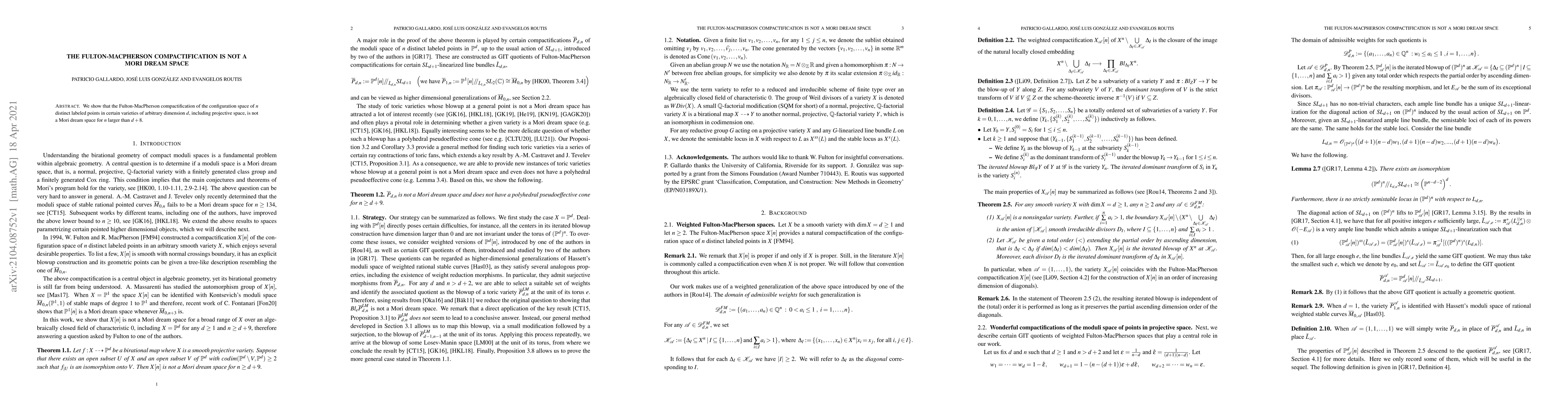 Summary: The paper demonstrates that the Fulton-MacPherson compactification of configuration spaces in certain varieties fails to be a Mori dream space when the number of points exceeds the dimension plus eight. This result highlights limitations in the compactification's geometric properties.