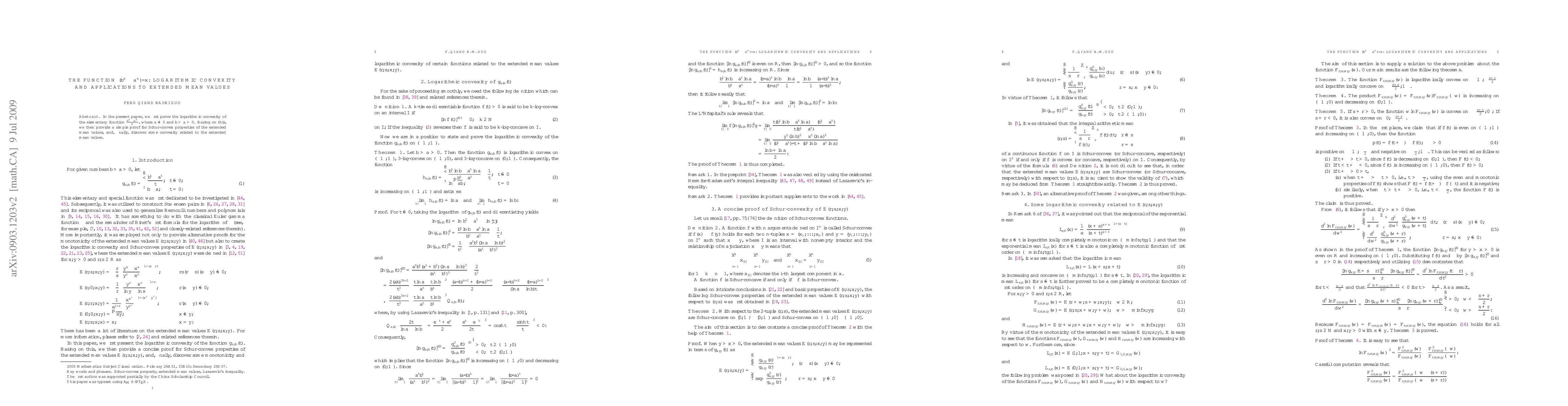 This paper proves the logarithmic convexity of the function (b^x-a^x)/x, then uses this to simply demonstrate Schur-convex properties of extended mean values, and discovers further convexity aspects related to these values.