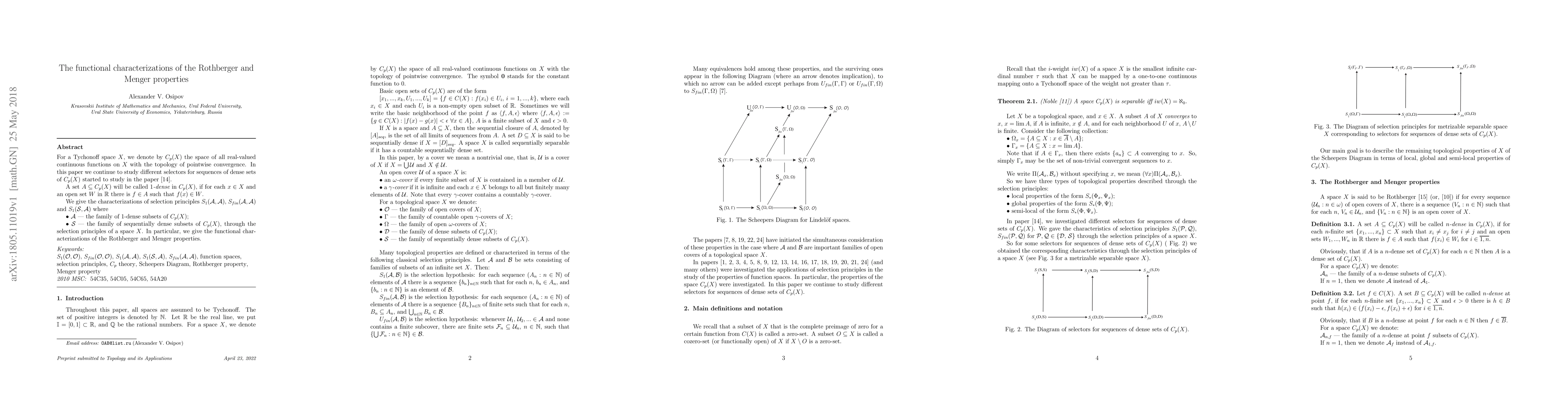This paper explores the functional characteristics of the Rothberger and Menger properties, providing key findings on their definitions and implications for mathematical analysis.