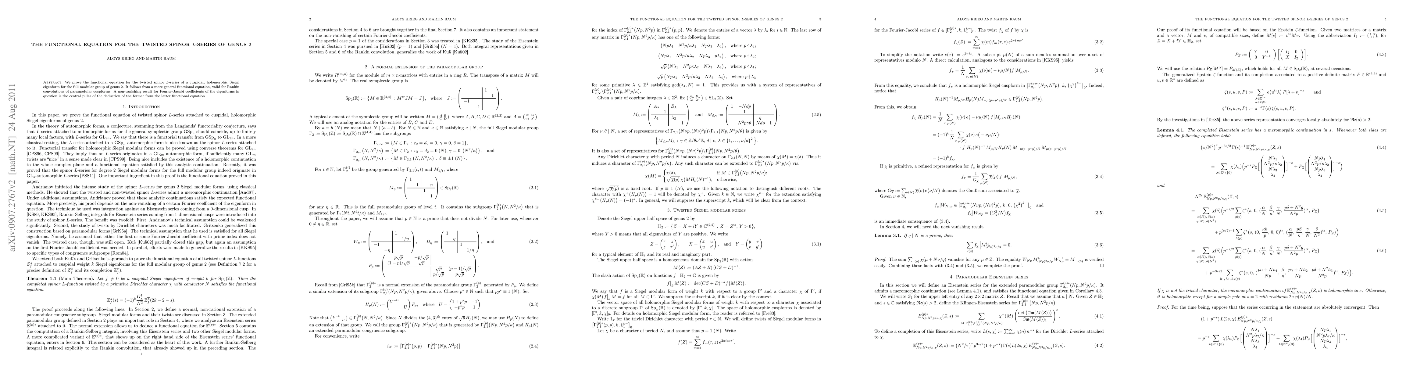 We prove the functional equation for the twisted spinor L-series of a cuspidal, holomorphic Siegel eigenform for the full modular group of genus 2. It follows from a more general functional equation, valid for Rankin convolutions of paramodular cuspforms. A non-vanishing result for Fourier-Jacabi coefficients of the eigenforms in question is the central pillar of the deduction of the former from the latter functional equation.