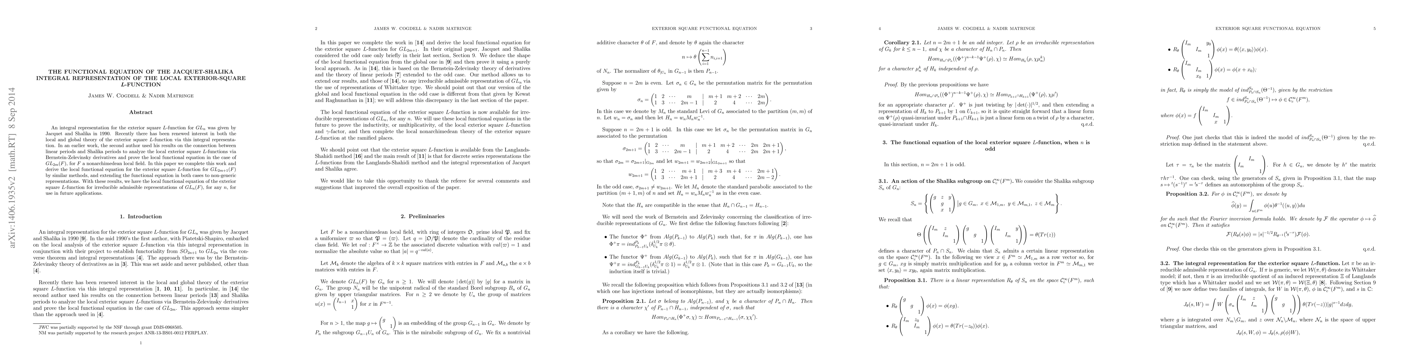 Summary: This paper establishes the functional equation for the non-archimedean exterior-square L-function associated with irreducible representations of GL(n), where n is an odd integer. The focus is on the Jacquet-Shalika integral representation method.