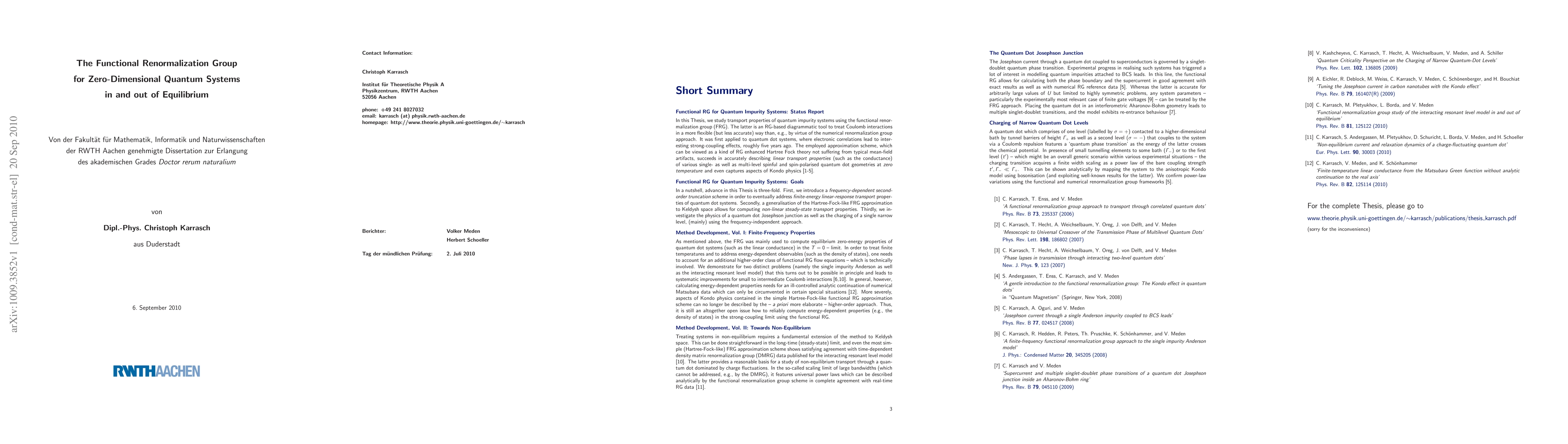 This paper employs the functional renormalization group to analyze transport properties in zero-dimensional quantum impurity systems, both in equilibrium and non-equilibrium. The study introduces a frequency-dependent second-order approximation to compute finite-temperature conductance and generalizes the approach to analyze non-equilibrium dynamics.