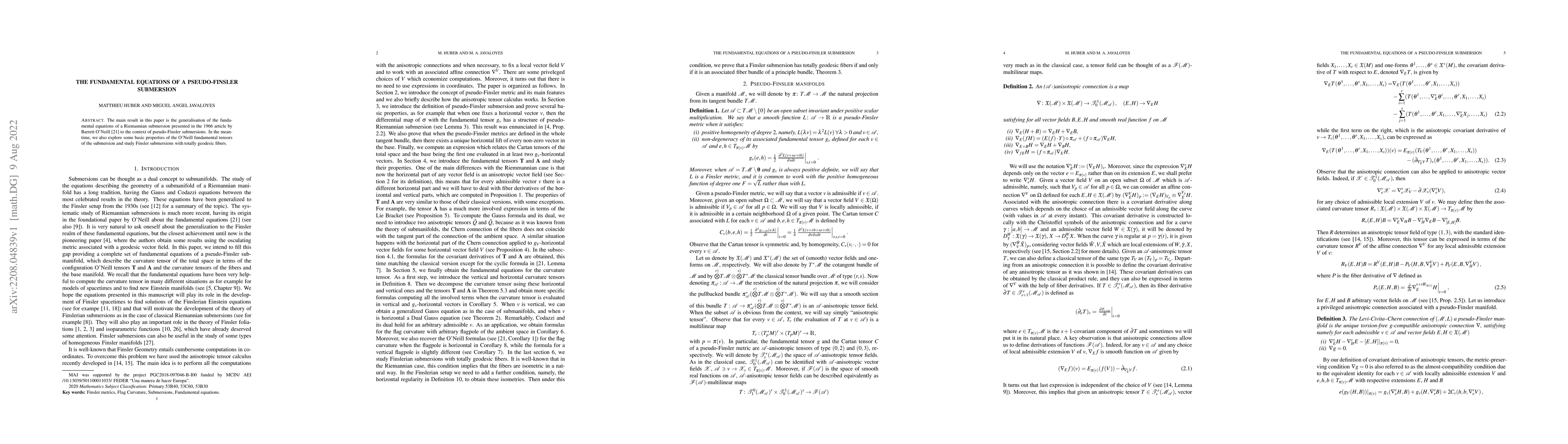 This paper generalizes the fundamental equations of Riemannian submersions to pseudo-Finsler submersions, exploring properties of O'Neill fundamental tensors and studying Finsler submersions with totally geodesic fibers.