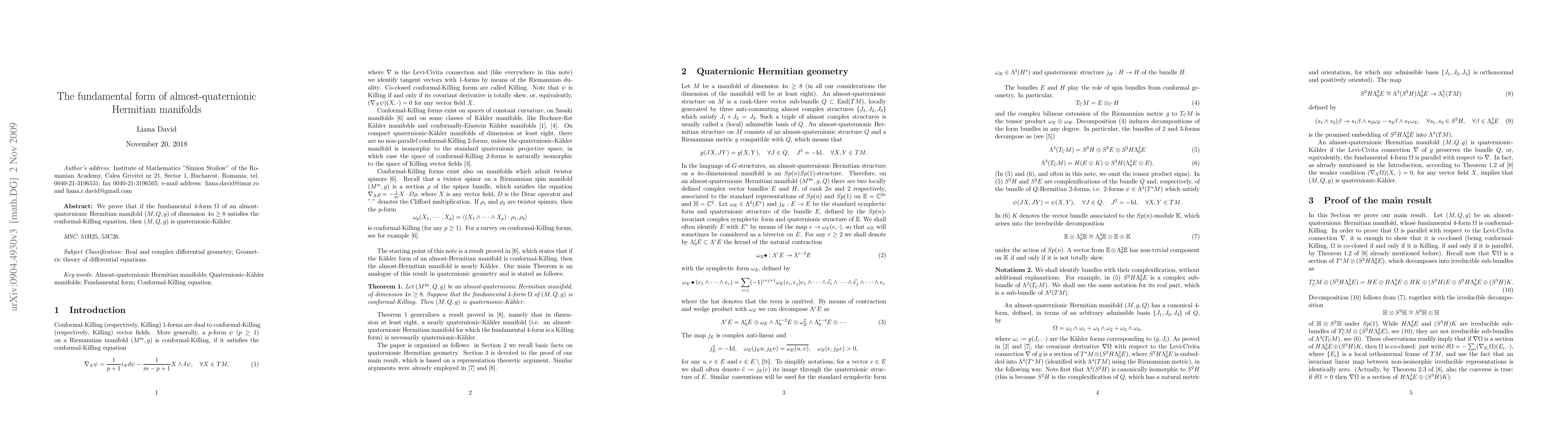 Researchers prove that if an almost-quaternionic Hermitian manifold satisfies a conformal-Killing equation, it is necessarily quaternionic-Kahler with at least 8 dimensions.