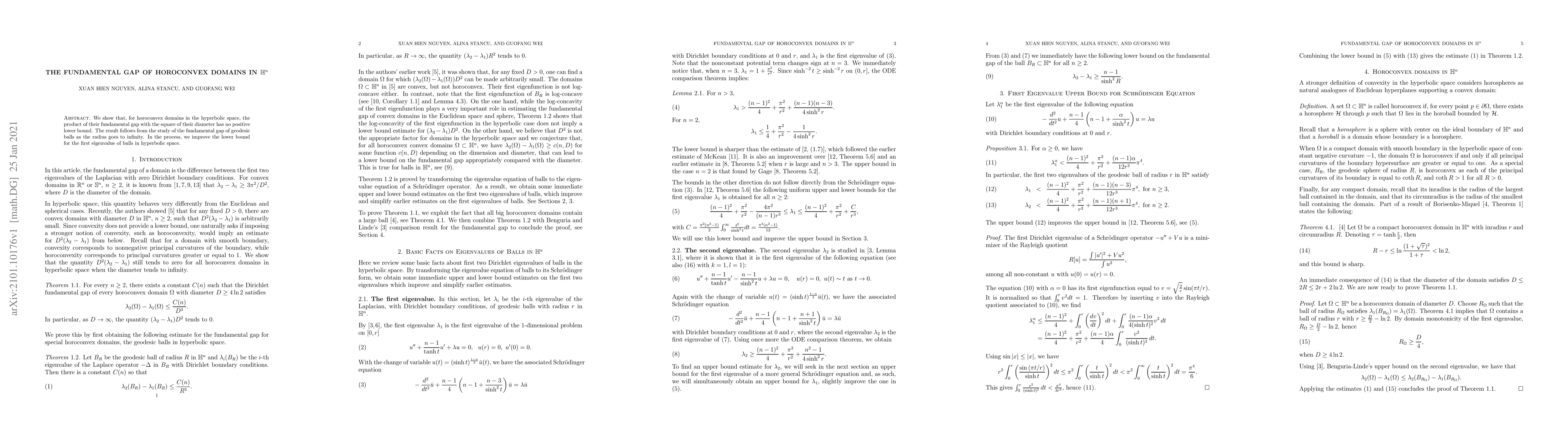 This paper demonstrates that the product of the fundamental gap and the square of the diameter of horoconvex domains in hyperbolic space lacks a positive lower bound, derived from the analysis of geodesic balls as their radii increase. Additionally, the study enhances the lower bound for the first eigenvalue of balls in hyperbolic space.