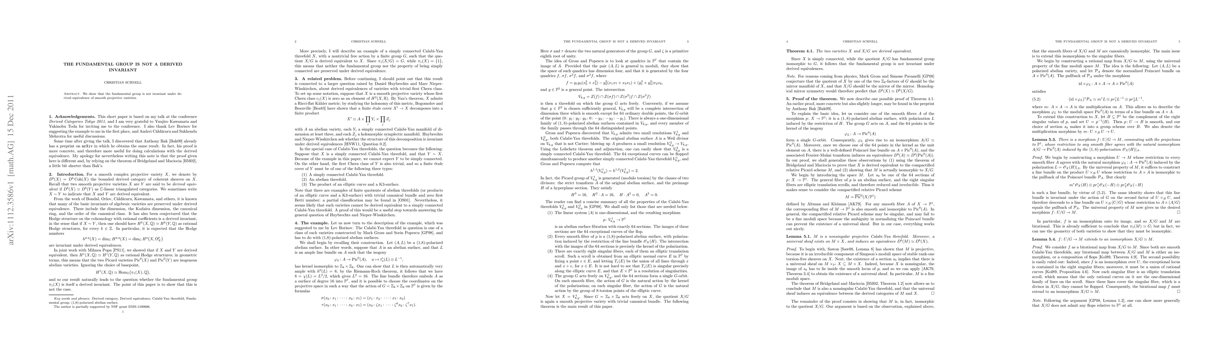 We show that the fundamental group is not invariant under derived equivalence of smooth projective varieties.