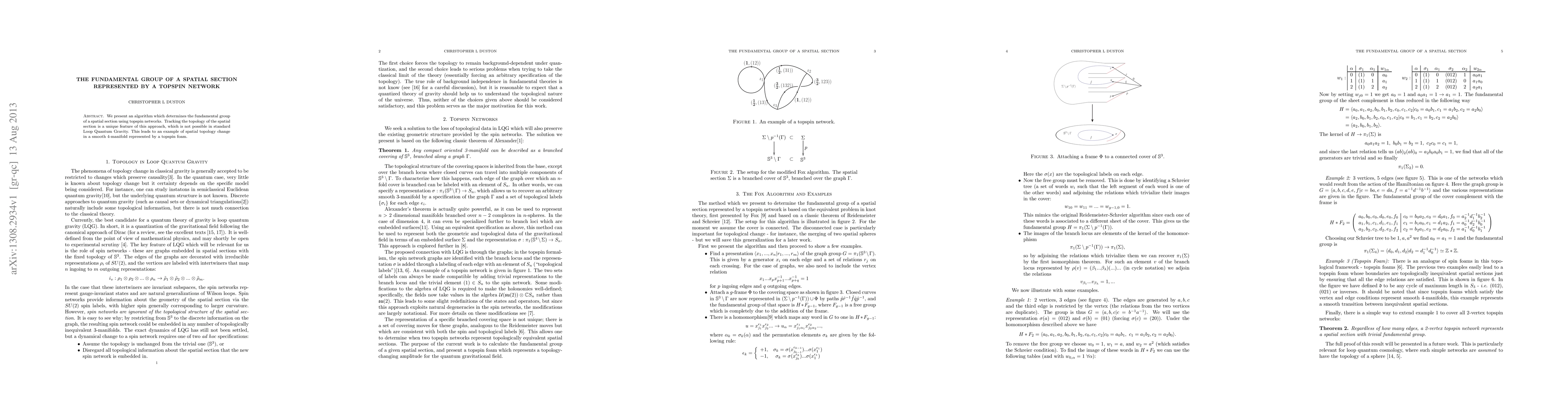 We present an algorithm which determines the fundamental group of a spatial section using topspin networks. Tracking the topology of the spatial section is a unique feature of this approach, which is not possible in standard Loop Quantum Gravity. This leads to an example of spatial topology change in a smooth 4-manifold represented by a topspin foam.